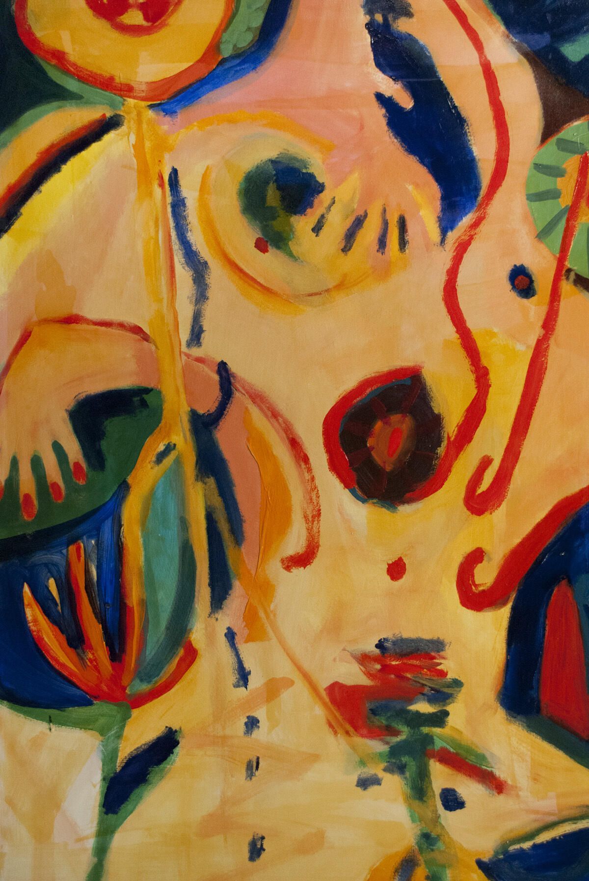 Smudges, stains in borders. Image in good condition. Pinholes in corners, tears in the upper-right corner. Abstract figure with flowers.Dimensions