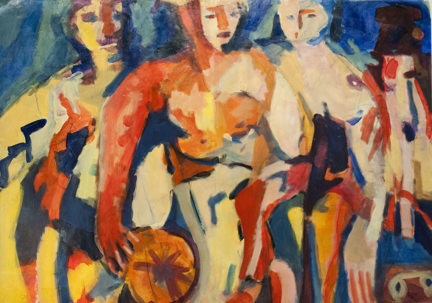 Smudges, buckling, and creases throughout borders and into image. Corners have multiple pinholes. Fair condition. Group portrait, young nude males. Viterbo series.Artwork Details