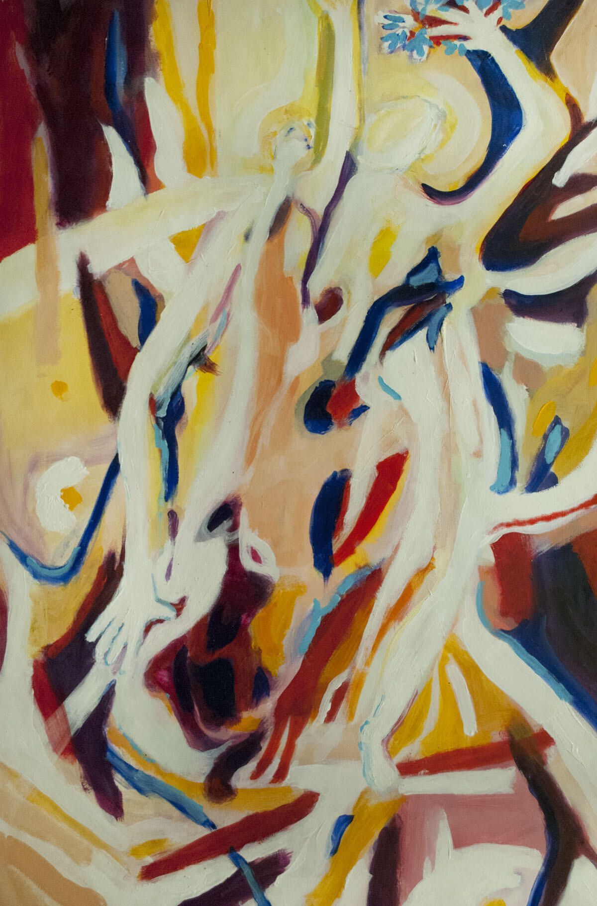Tears in borders, repaired by artist with scrap paper and acrylic medium. Smudges and abrasions in borders. Pinholes in corners of image. Black flakes adhered to image throughout. Columbus Ave. series.Dimensions