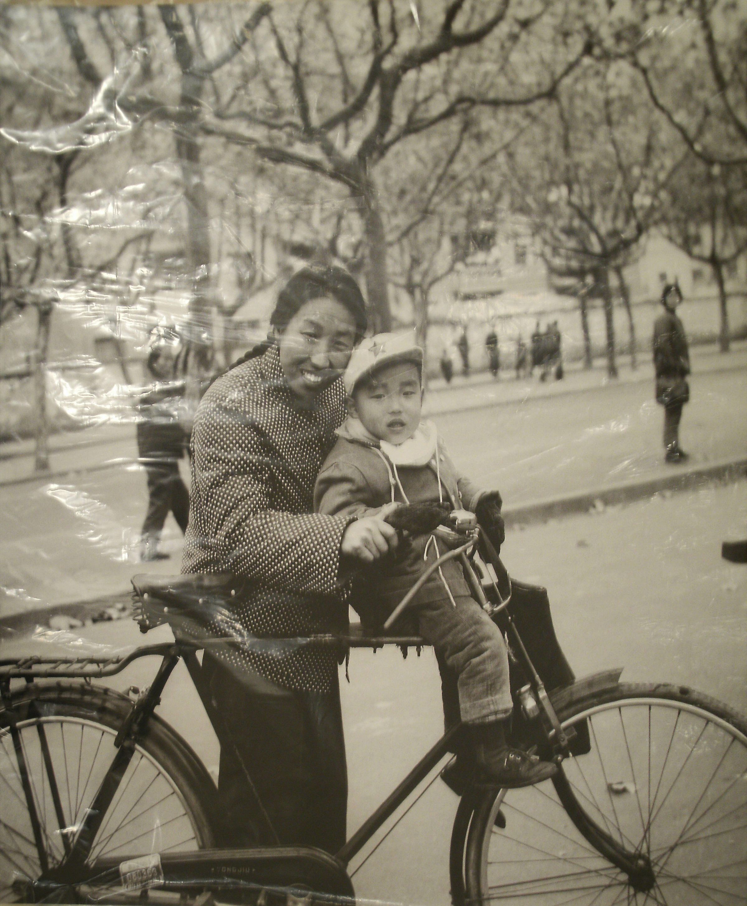 China, bike, bicycle, child, human, adult, black and white, retake, standing, fashionCollection