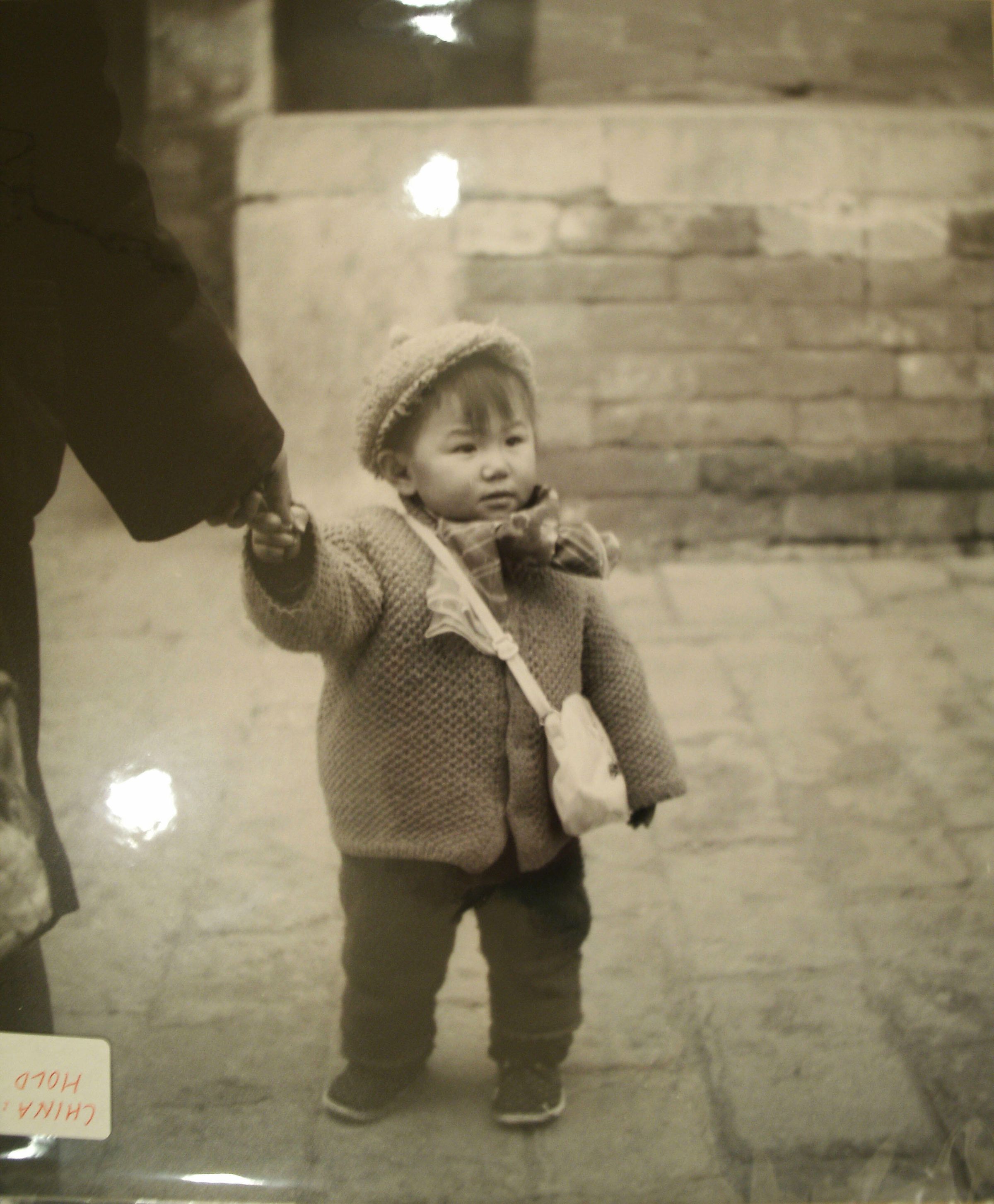 child, China, black and white, retake, handbag, bandana, human, standing, fashionCollection