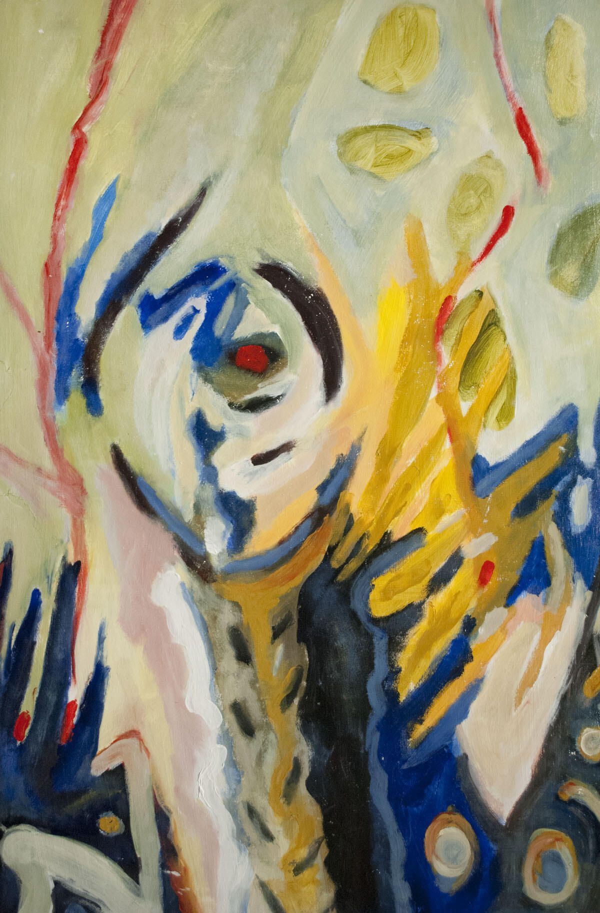 Grass loosely adhered to image. Points of paint transfer, pinholes in corners of image. Smudges, abrasions in borders. Landscape. Columbus Ave. series.Location
