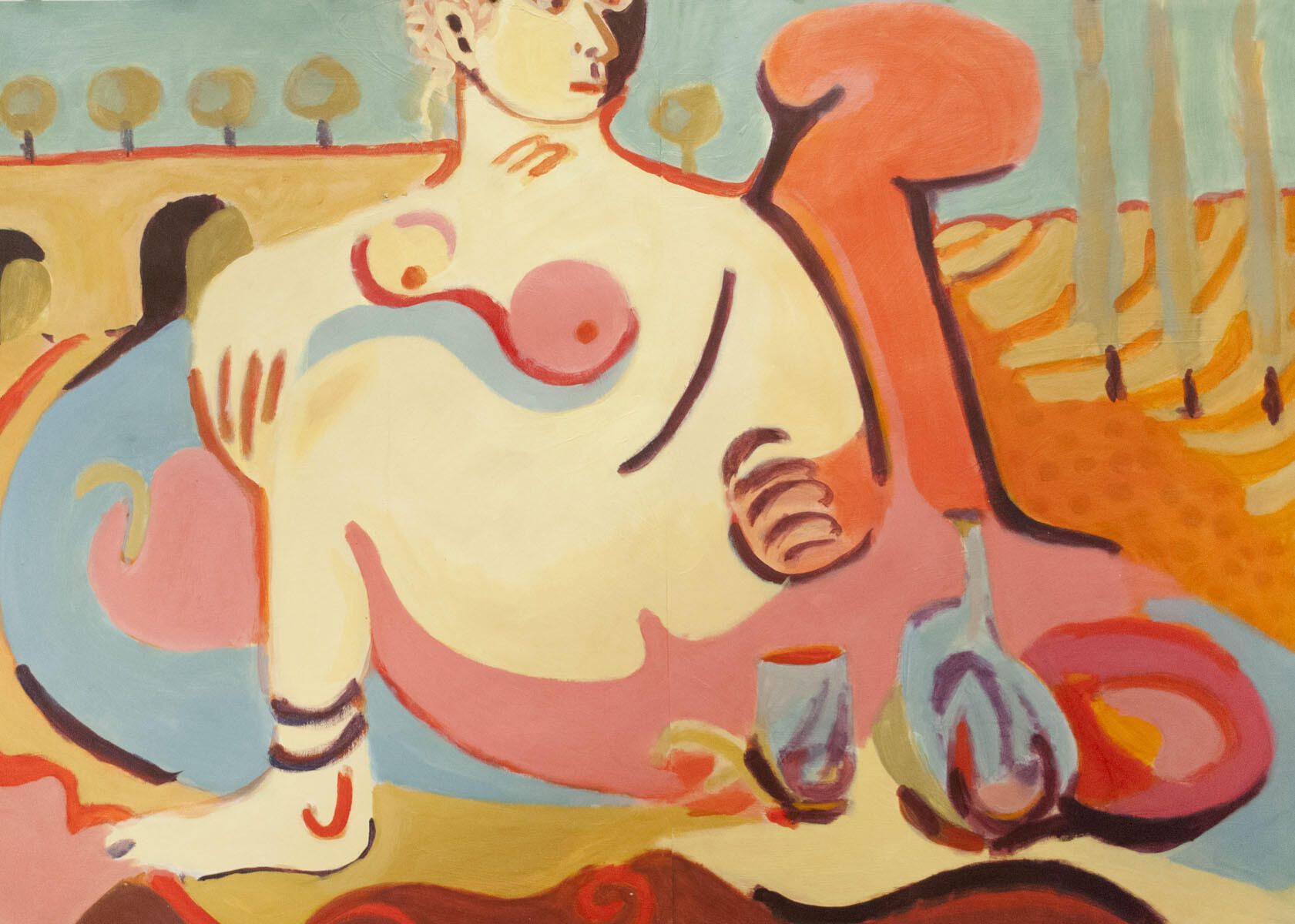 Two sheets adhered together to form larger image area. Tears, creases, smudges in borders. Image in good condition. Nude female figure. Viterbo series.Dimensions