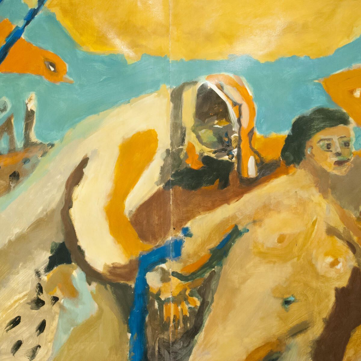 Two sheets adhered to form larger image area. In overall good condition. Figures in foreground, landscape.Dimensions