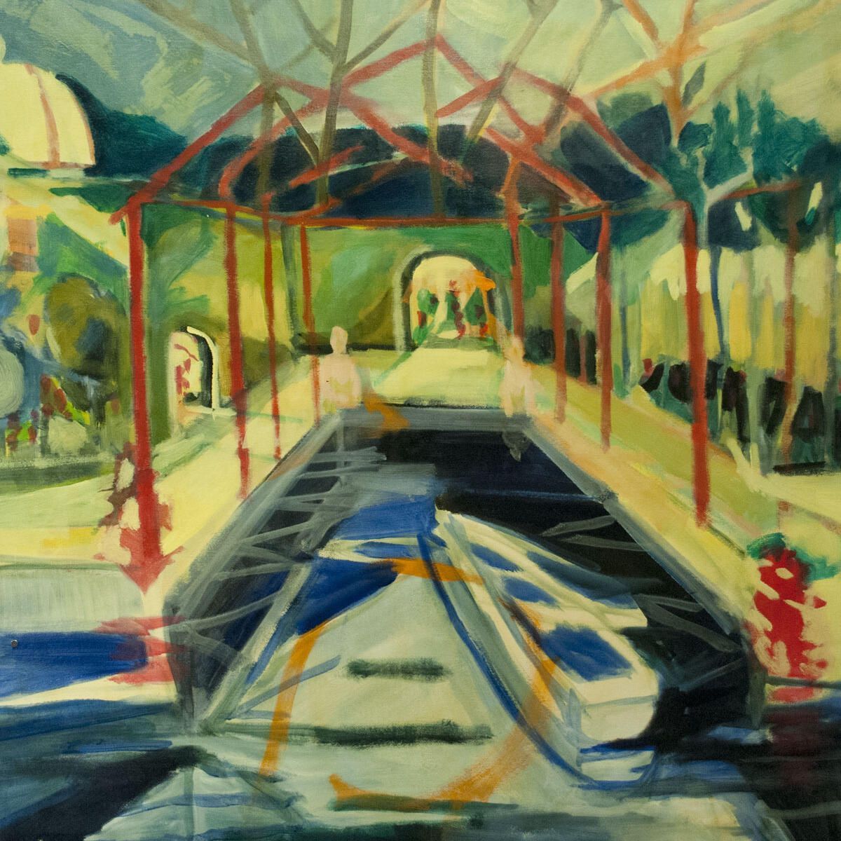 Pencil marks, smudges in borders. Image in good condition. Lake boat dock. Viterbo series.Dimensions