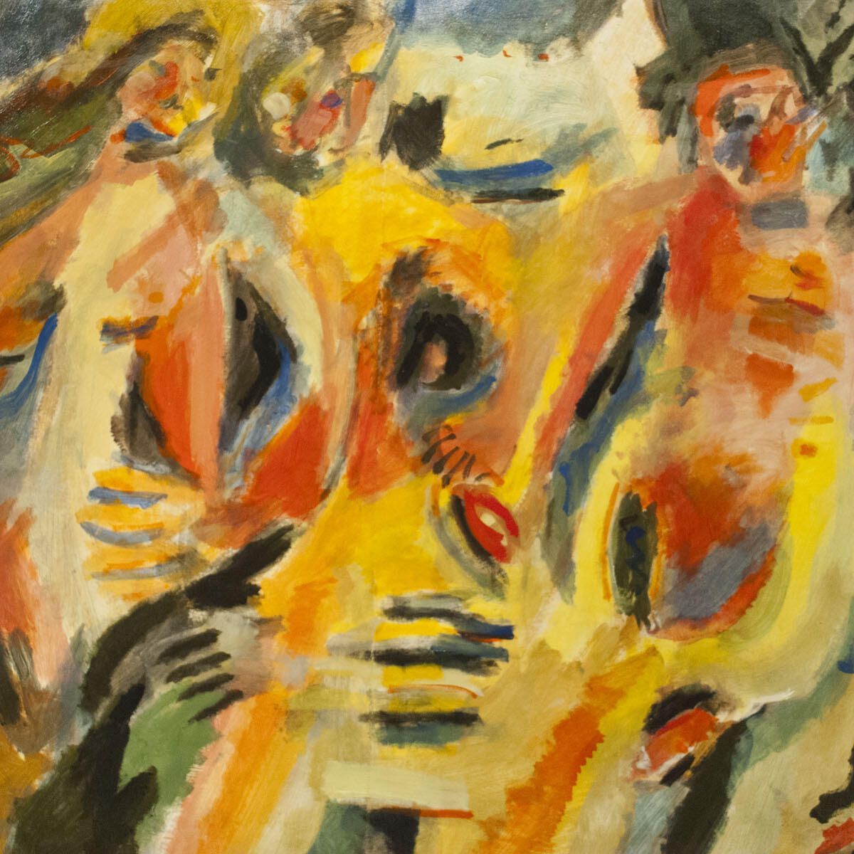 Two sheets adhered together to form larger image area. Pinholes in each corner. Three figures. Montserrat School of Art series.Dimensions