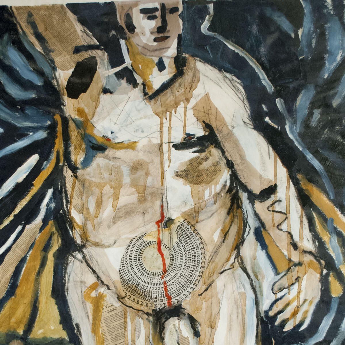 Acrylic, polyurethane, newspaper collage on paperDimensions