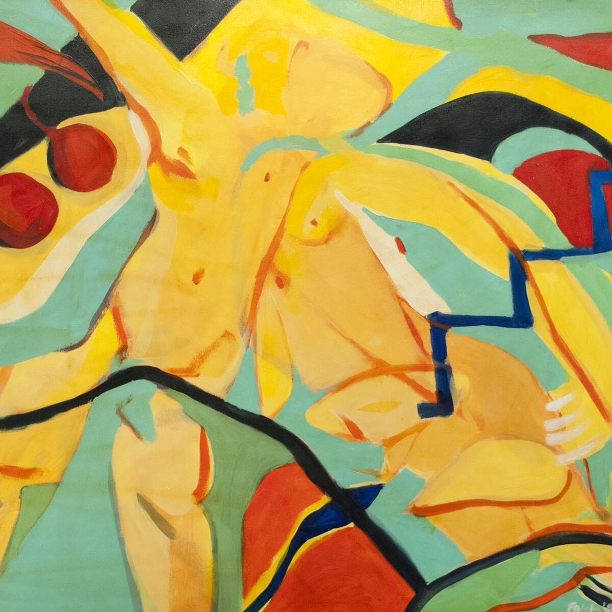 Two sheets adhered together to form larger image area. Minor smudges in borders. Image in good condition. Figures dancing. San Miguel series.Dimensions