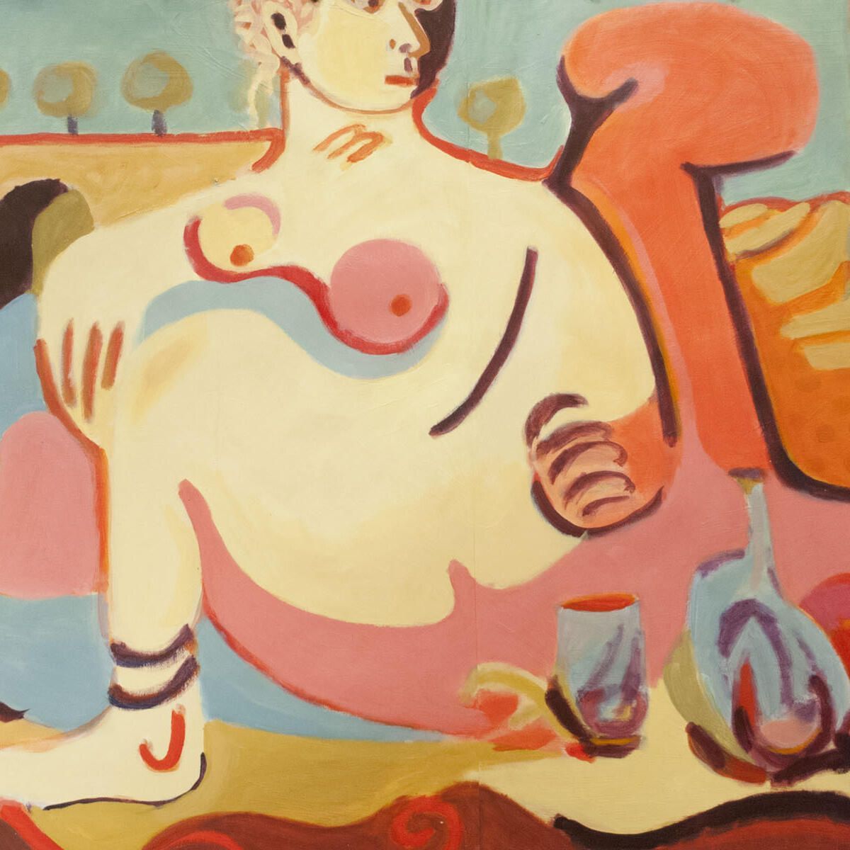 Two sheets adhered together to form larger image area. Tears, creases, smudges in borders. Image in good condition. Nude female figure. Viterbo series.Dimensions