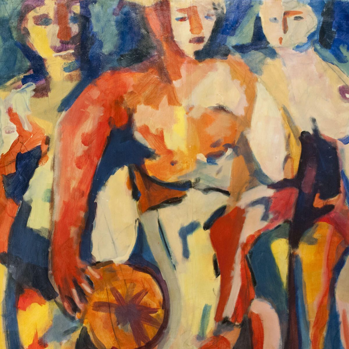 Smudges, buckling, and creases throughout borders and into image. Corners have multiple pinholes. Fair condition. Group portrait, young nude males. Viterbo series.Artwork Details