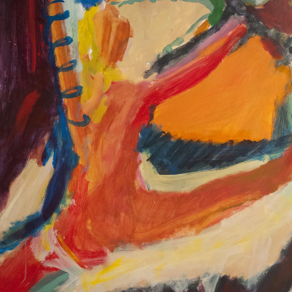Tear in upper-left, repaired by artist with scrap paper and acrylic medium. Paint abraded from image at several points throughout. Figure. Montserrat series.Location