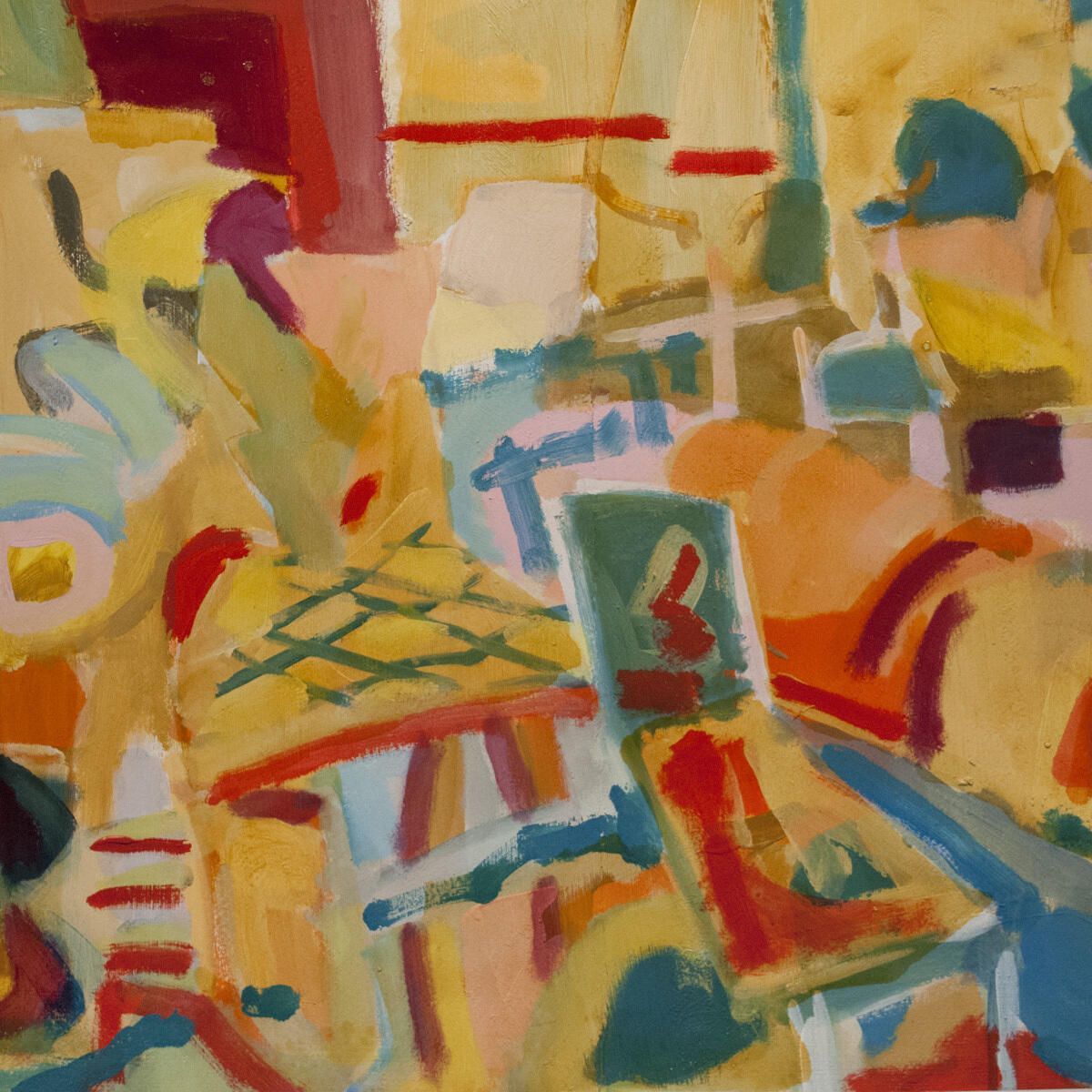 Two sheets adhered together to form larger image area. Few smudges in borders. Image in good condition. Interior scene. San Miguel series.Dimensions