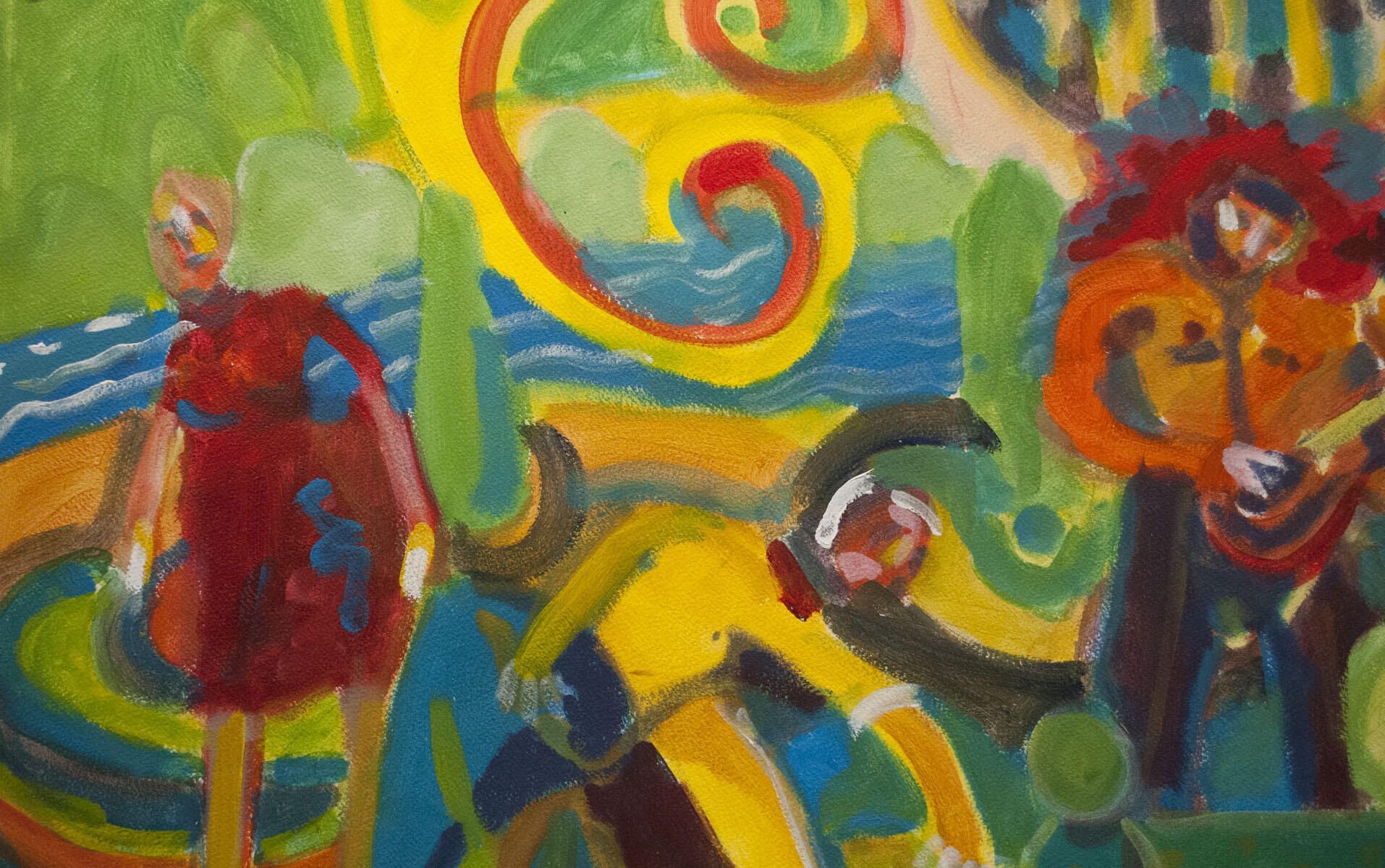 Light smudging in borders, abrasion in upper-left corner. Image in good condition. Symbolic landscape with two figures.Location