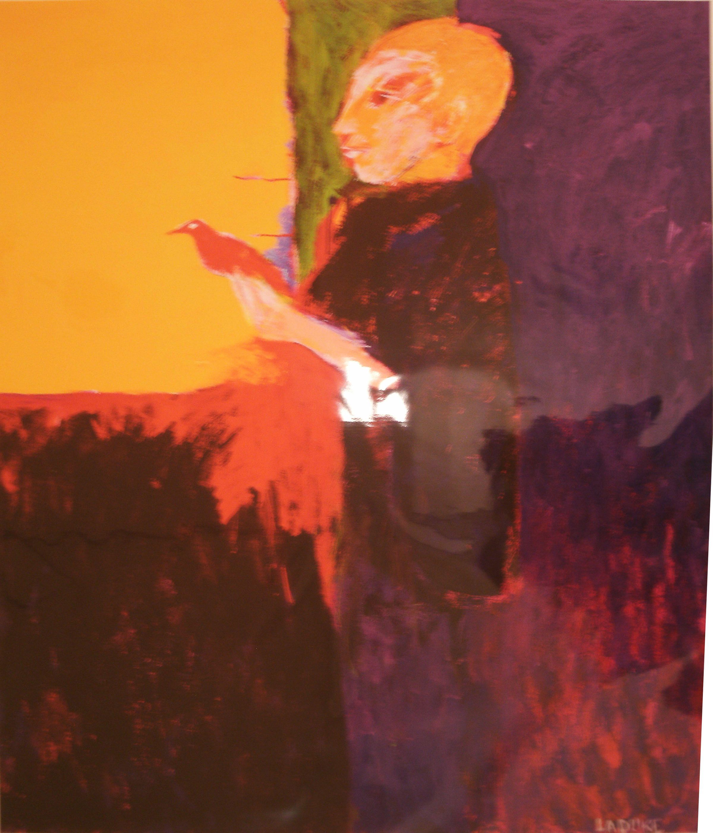human, bird, animal, yellow, purple, standingCollection