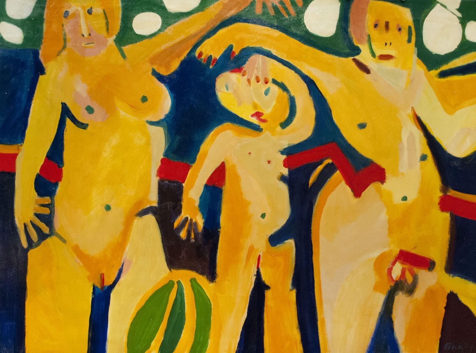 Abrasions, creases, smudges in borders. Pinholes in each corner. Image in good condition. Group of figures. Columbus Ave. series.Dimensions