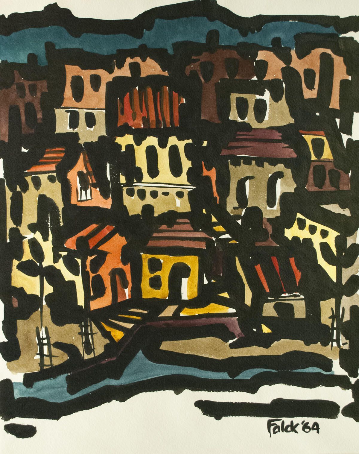 Poorly matted with masking tape. Image in good condition. Townscape.Location
