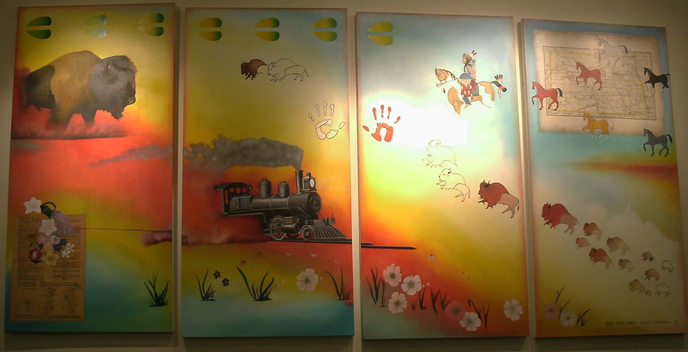 Retake, bison, train, Indigenous man, map, flowers, rainbowCollection