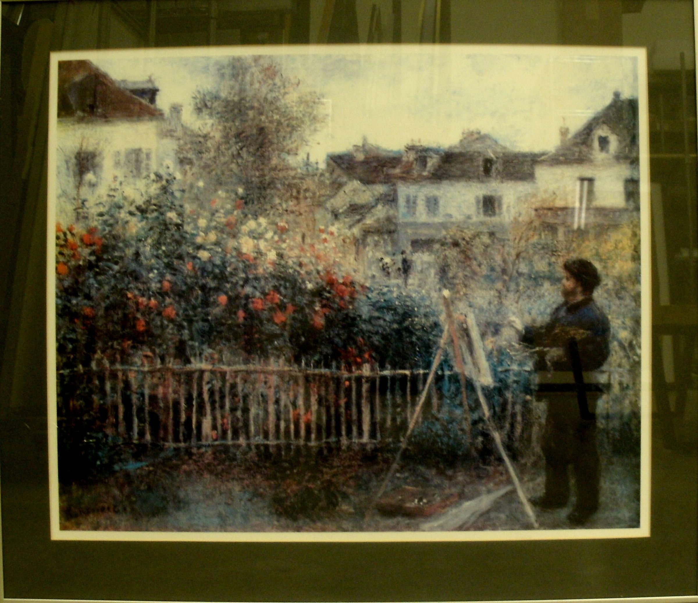 retake, human, Monet, standing, painting, plants, flowers, houses, cityCollection