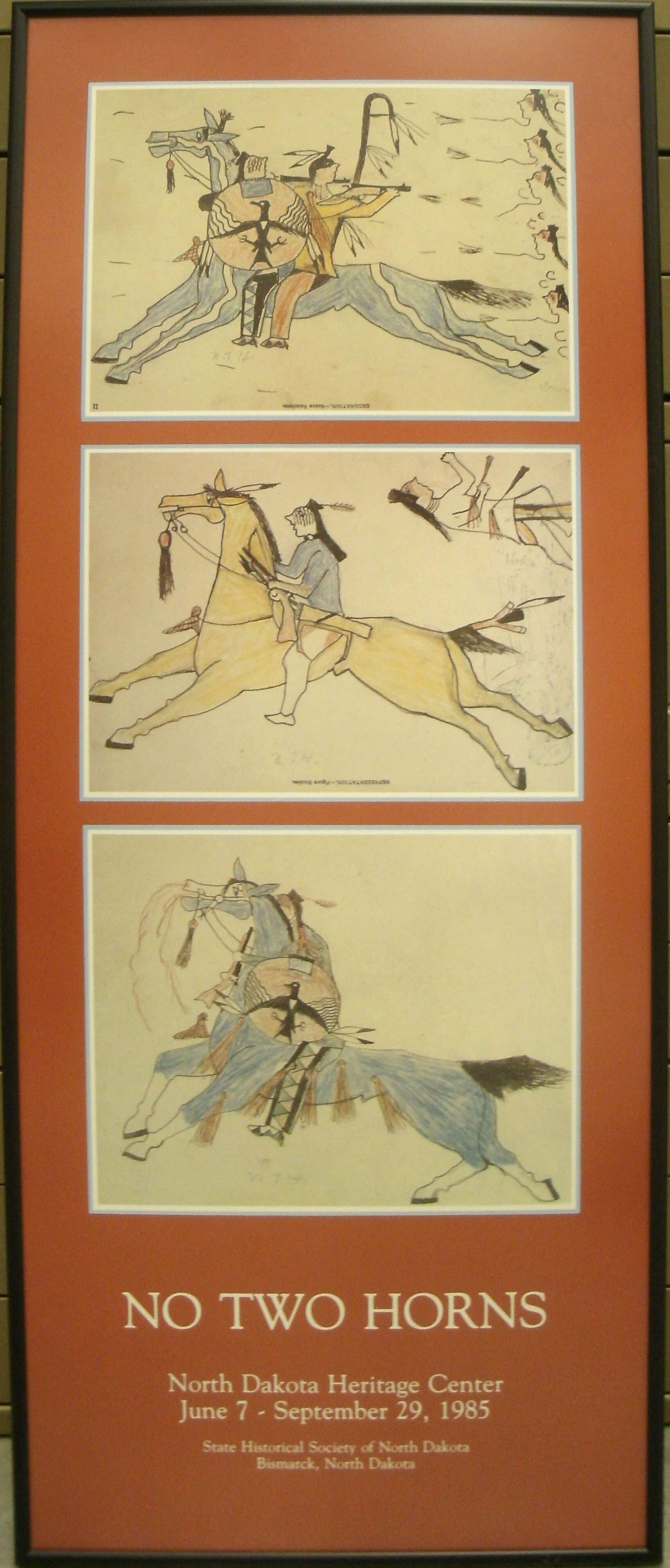 Apple Creek, Indigenous culture, human, sitting, horse, animal, blue, yellow, red, white, posterCollection