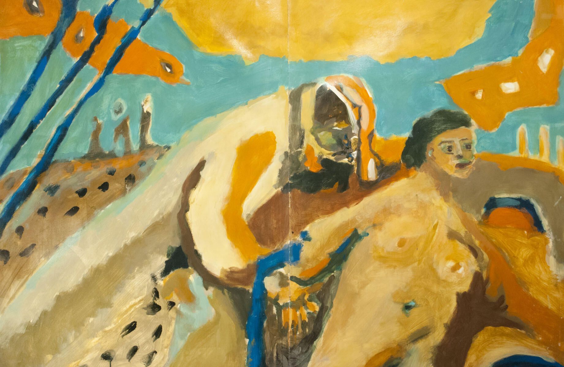 Two sheets adhered to form larger image area. In overall good condition. Figures in foreground, landscape.Dimensions
