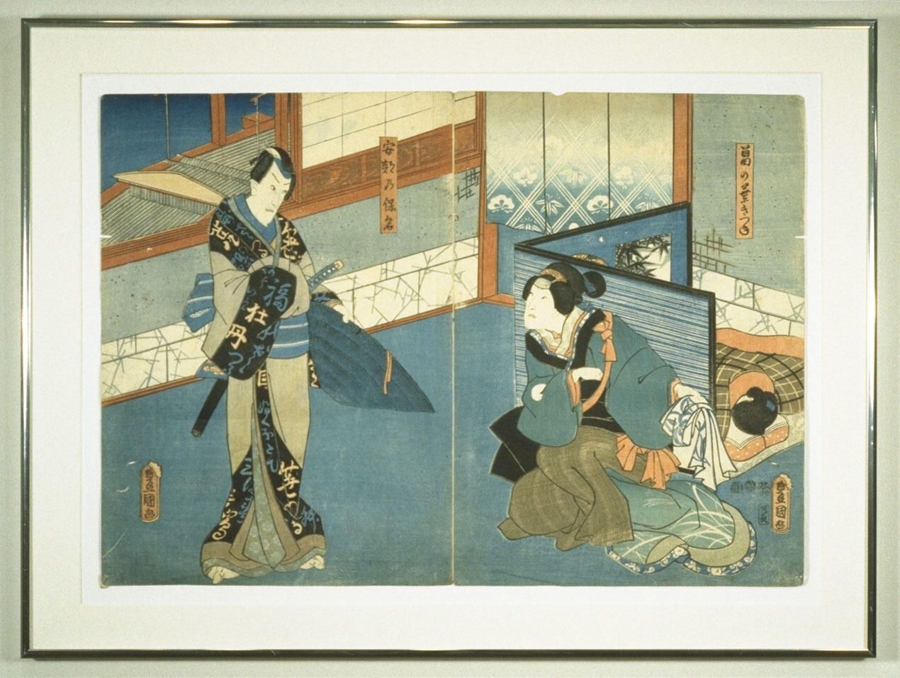 Ukiyo-e woodcut of the Edo period, Japan by Utagawa Kunisada. Kunisada was the most prolific and admired of printmakers during this period. Known by many names, including Utagawa Kuniyoshi, and Utagawa Toyokuni III.