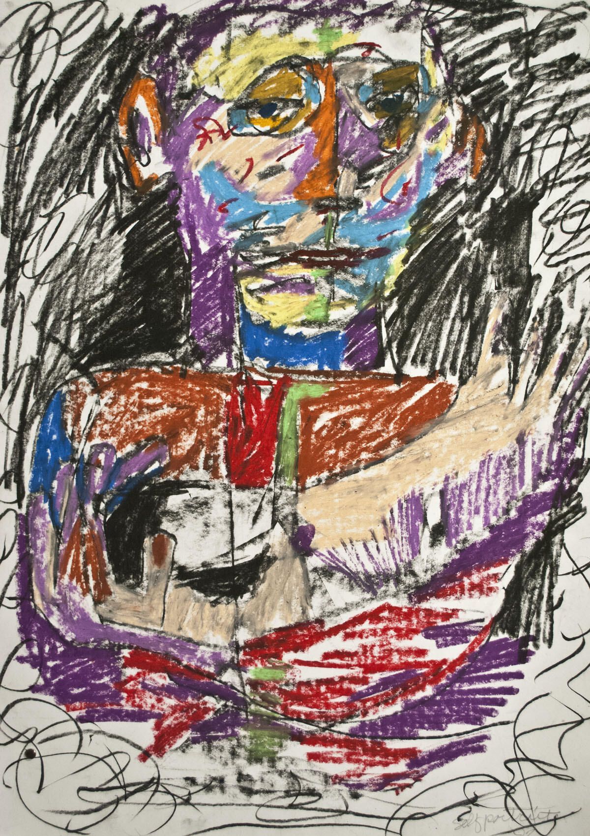 Abstract composition. Smudging throughout, in otherwise good condition. Human, blank stare, rainbowArtwork Details