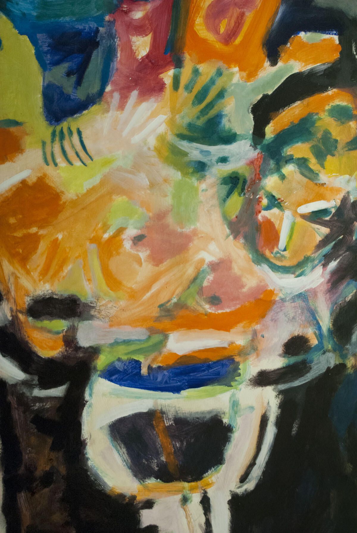 Multiple pinholes in corners. Areas of white pigment transfer throughout. Still life. Montserrat series.Location