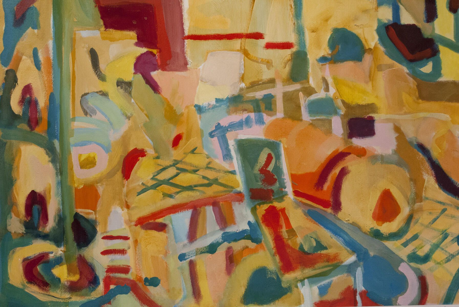 Two sheets adhered together to form larger image area. Few smudges in borders. Image in good condition. Interior scene. San Miguel series.Dimensions