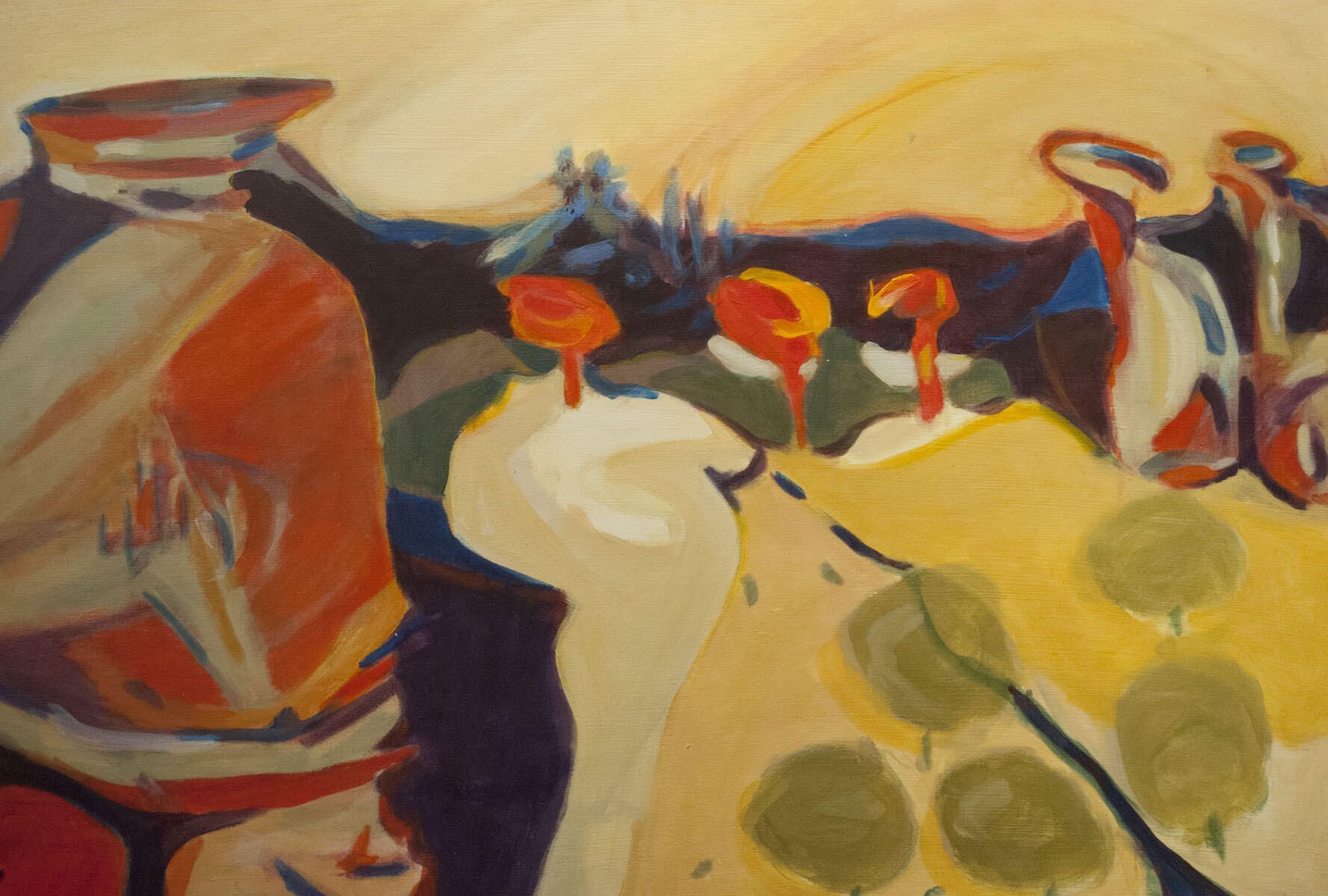 Pinholes in corners. Image in good condition. Landscape. Viterbo series. Yellow, Red, Blue, trees, plants, landscapeDimensions