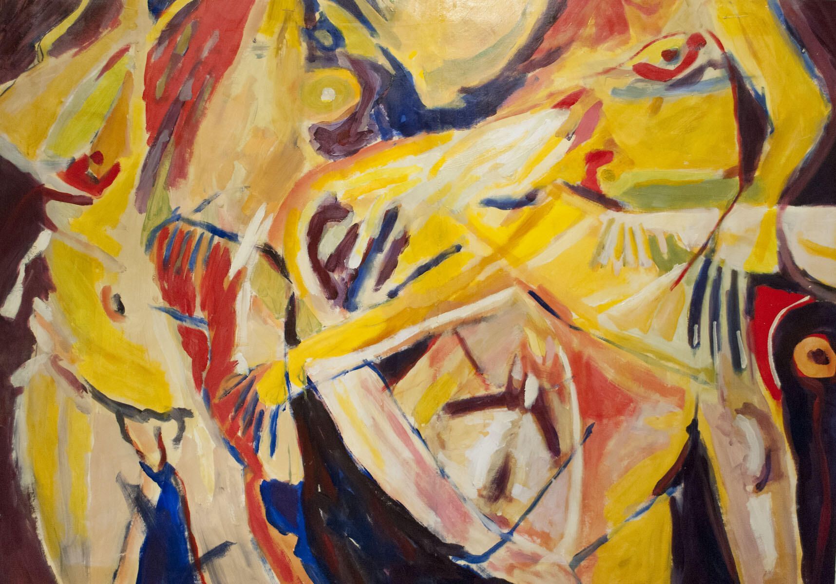 Two sheets adhered together to form larger image area. Tears, smudges, pinholes in borders. Image in good condition. Abstract figures. Gallifa series.Dimensions