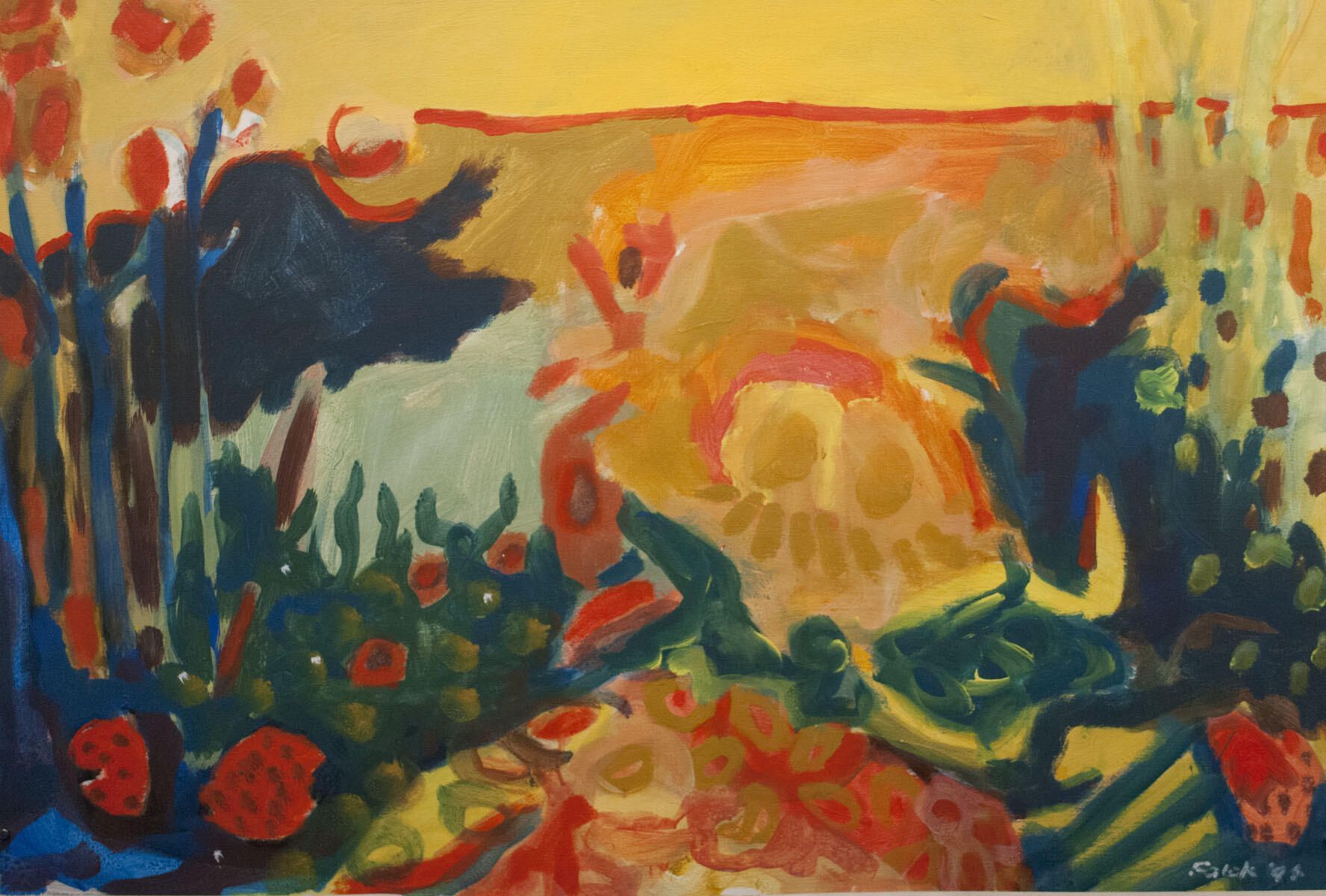 Paint transfer, lower-left quadrant. Borders with minor smudges. Pinholes in corners of image. Landscape. Viterbo series.Dimensions