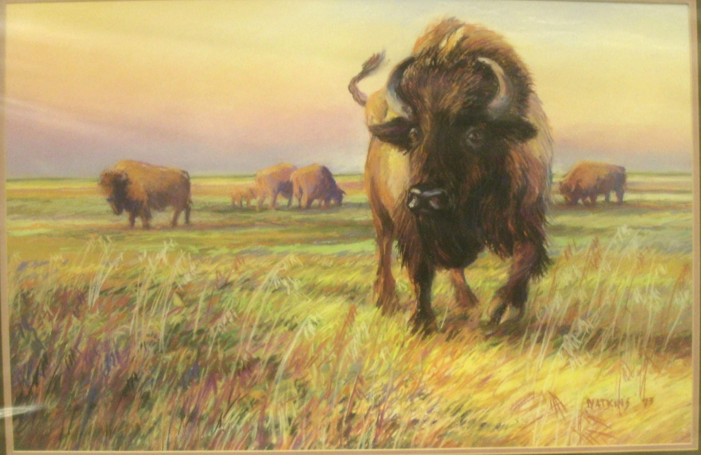 Bison, field, yellow, purple, brownCollection