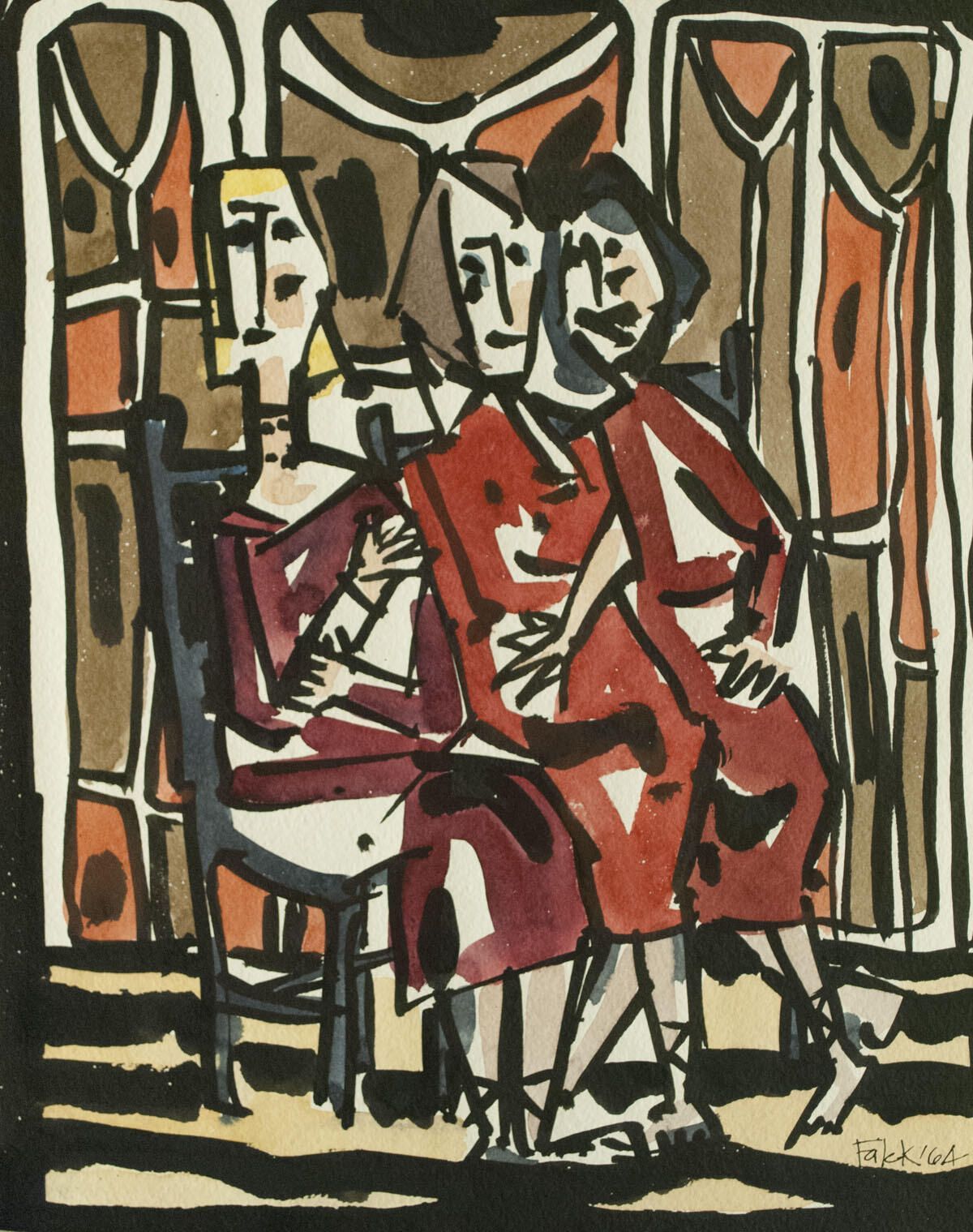 Poorly matted with masking tape. Image in good condition. Three seated figures.Dimensions
