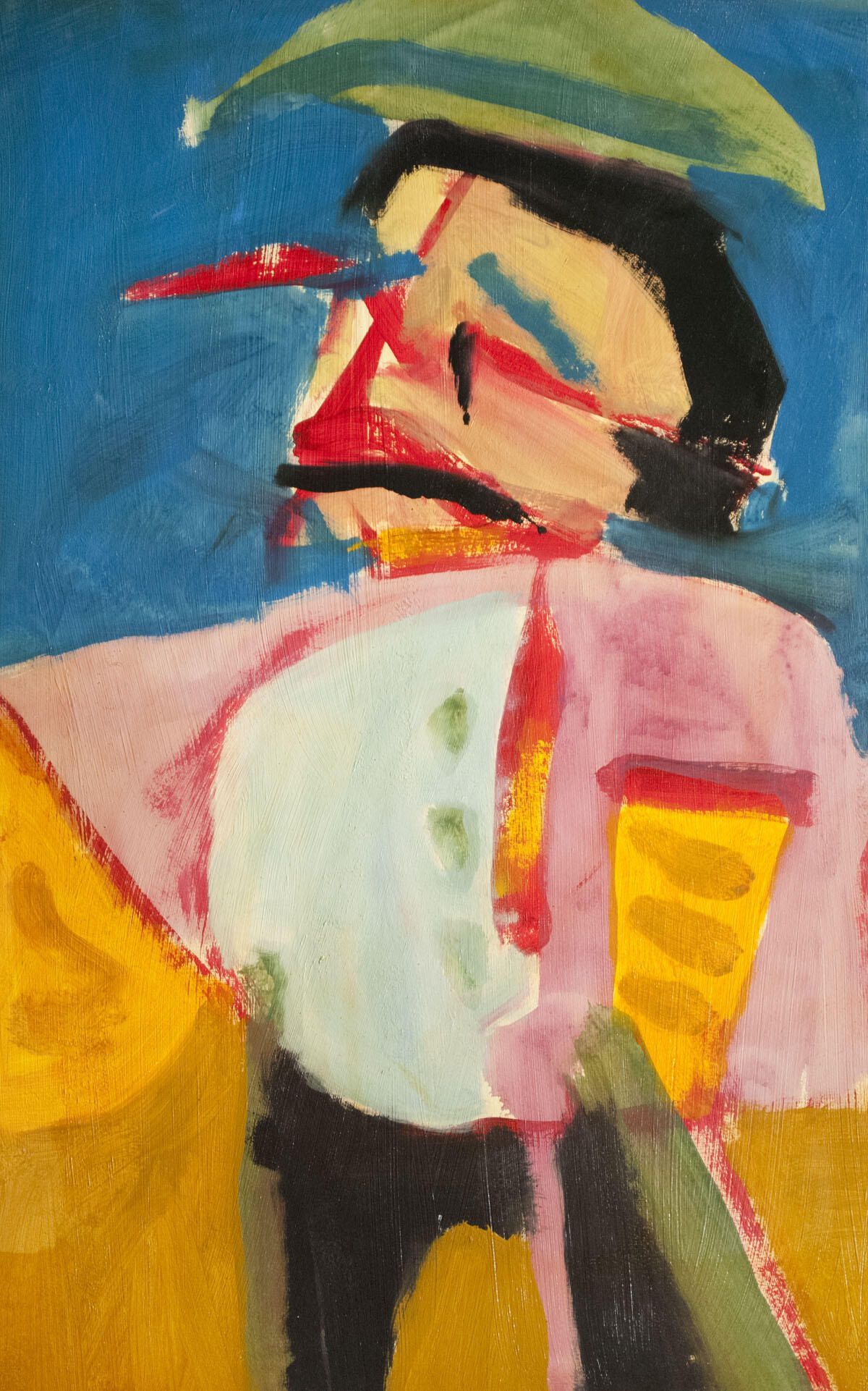 Abrasions, smudges in borders. Glass or candy adhered to image lower-left corner. San Miguel series.Dimensions