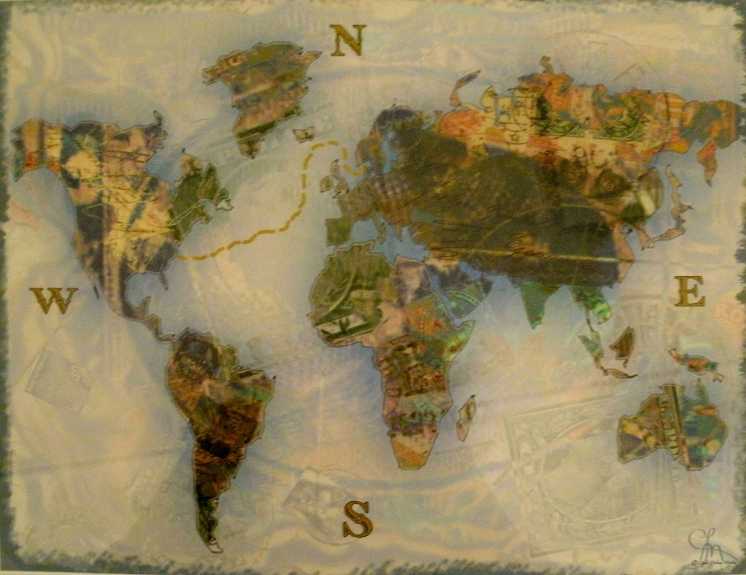 Map, world map, green, blue, orangeMade/Created
