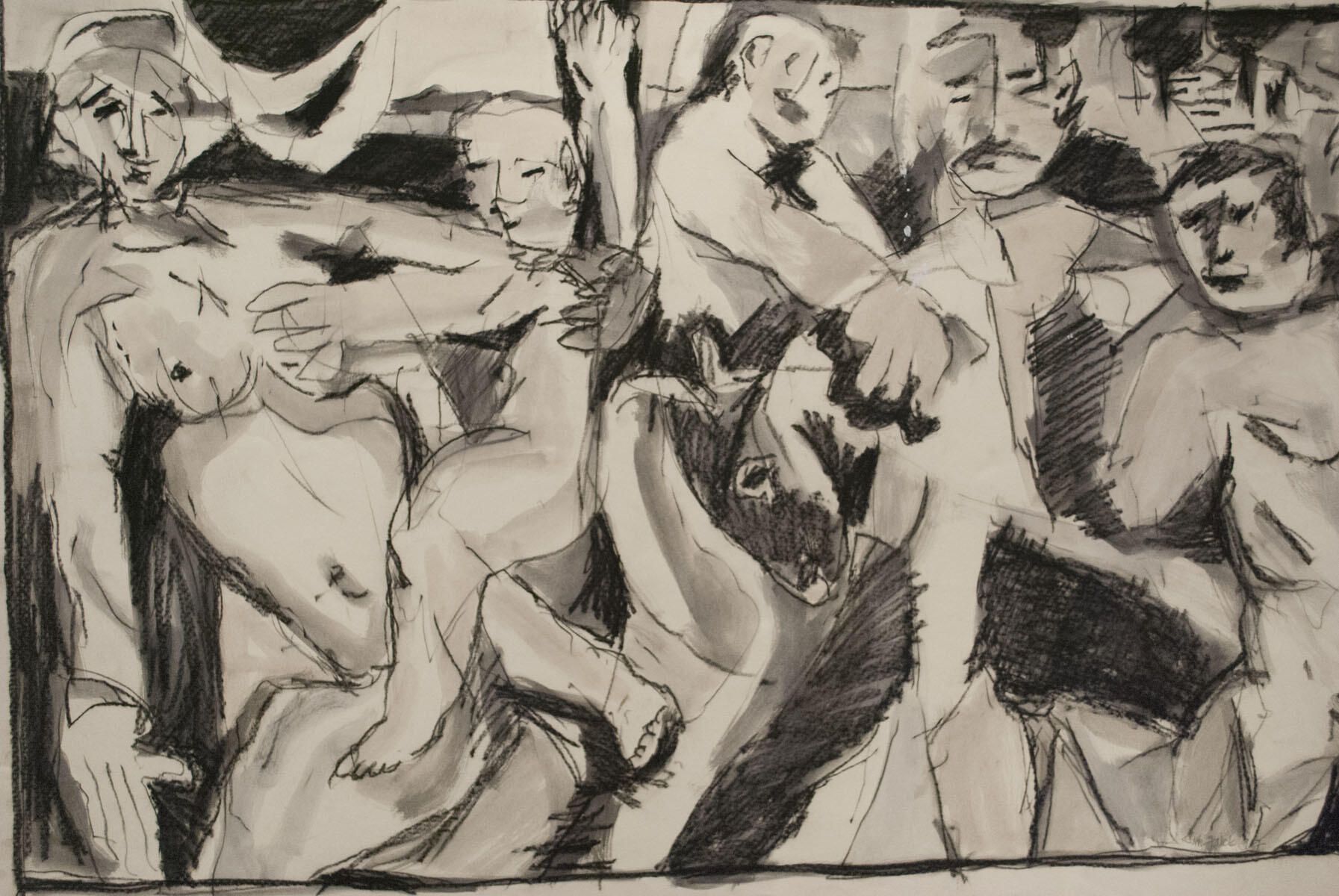 White paint transferred in image. Smudges, tears, pencil marks in borders. Image in otherwise good condition. Family portrait. San Miguel series.Location