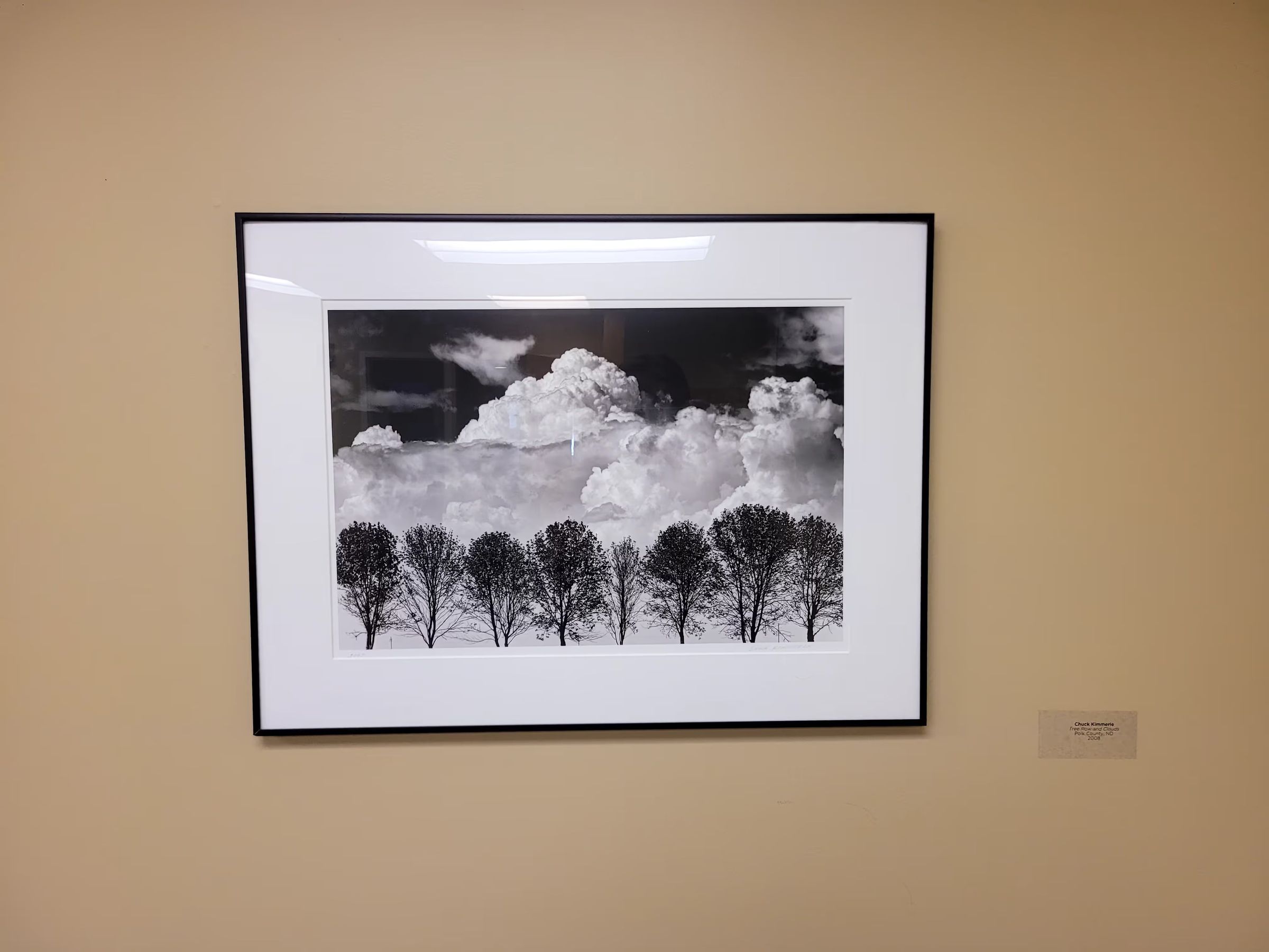 8 trees with huge clouds above them and a chasm of darkness above that. black and white, trees, plants, clouds, North DakotaCollection