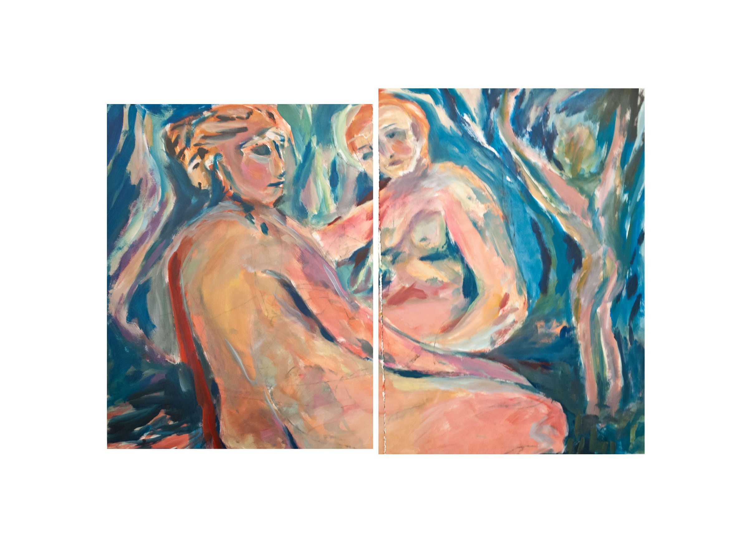 Image covers two sheets. Pinholes in corners of each. Minor smudging in borders. Image in otherwise good condition. Two nude female figures.Artwork Details