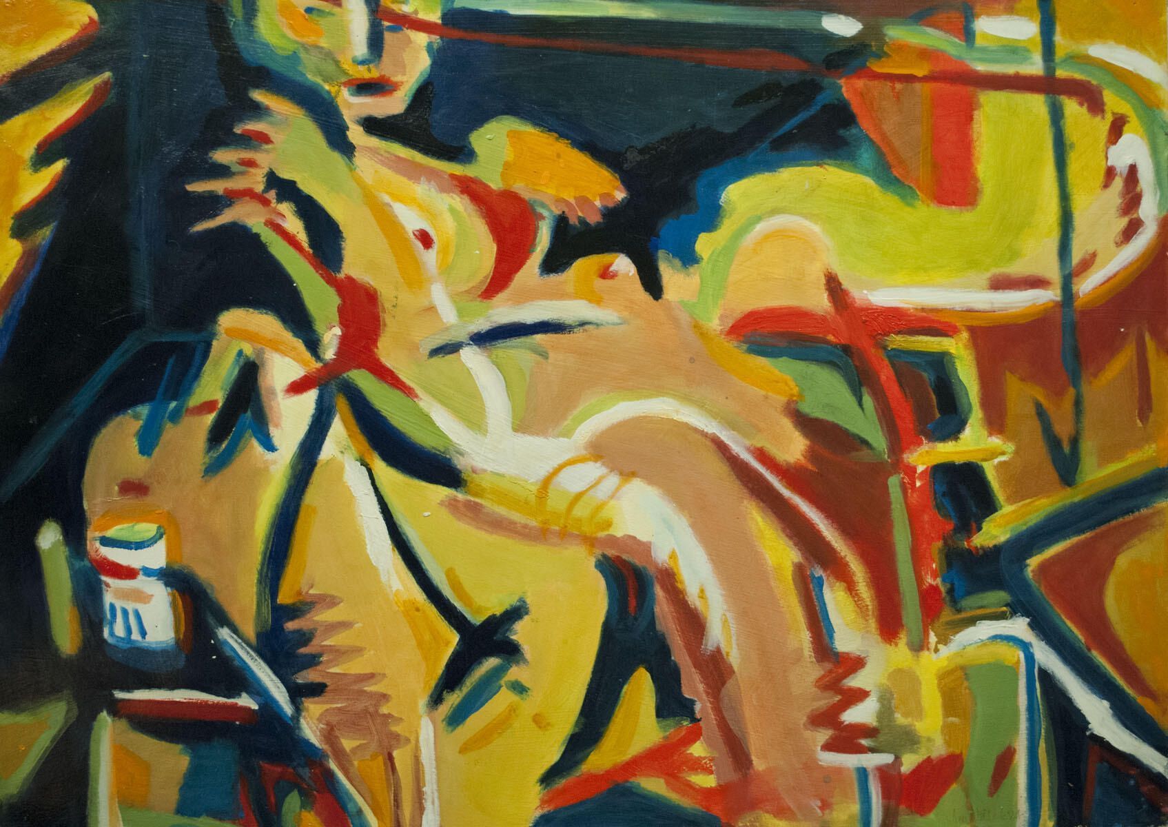 Multiple pinholes in corners. Points of white pigment transfer throughout image. Female nude figure.Location