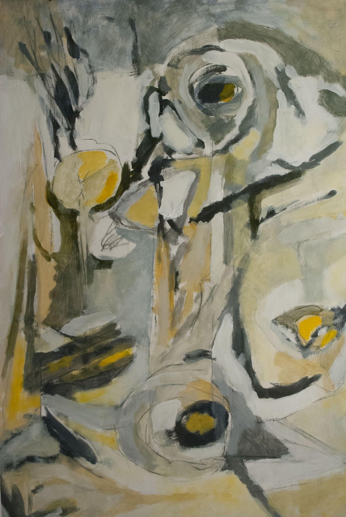 Stains, smudges, abrasions in borders. Pinholes in each corner. Image in good condition. Abstract composition - still life? Item identified for 2019 BBBArtwork Details