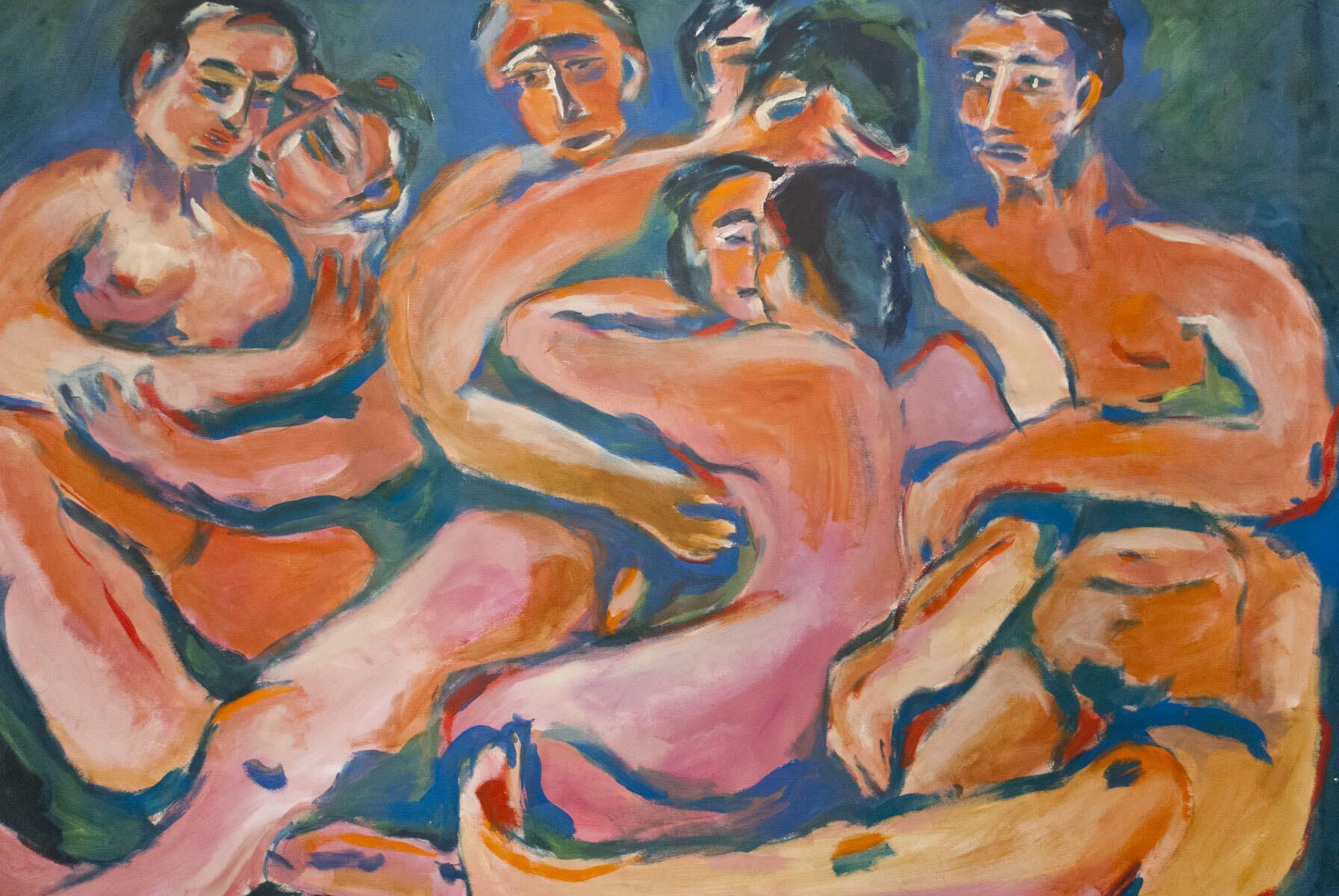 Pinholes in perimeter. Creasing from being rolled. Otherwise in good condition. Several figures embracing.Artwork Details