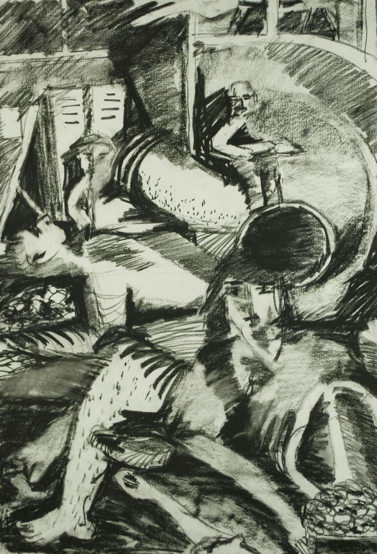 Light smudging of charcoal throughout. Figure study.Location