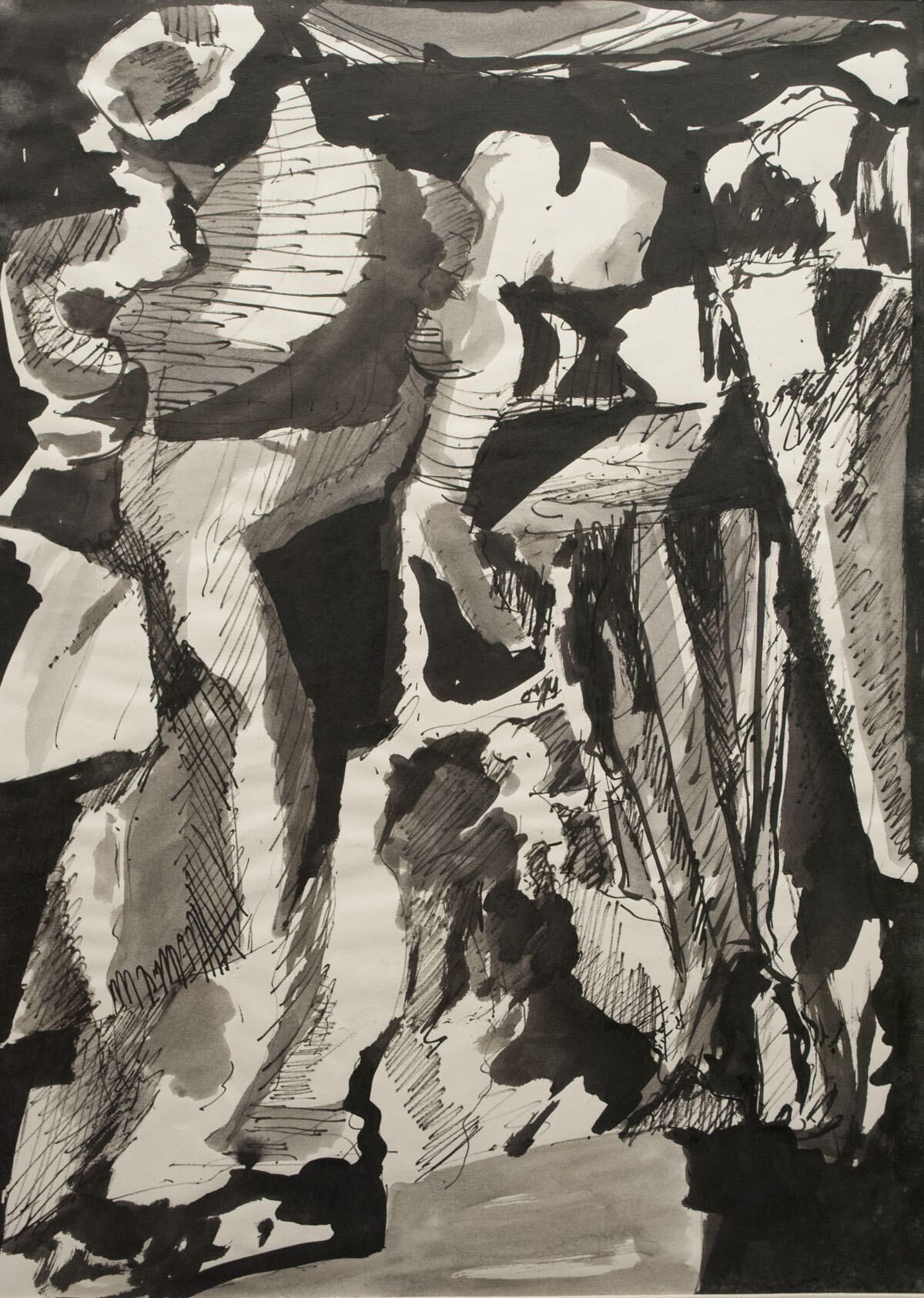 Poorly matted with masking tape. Pinholes in corners. Abstract composition.Location