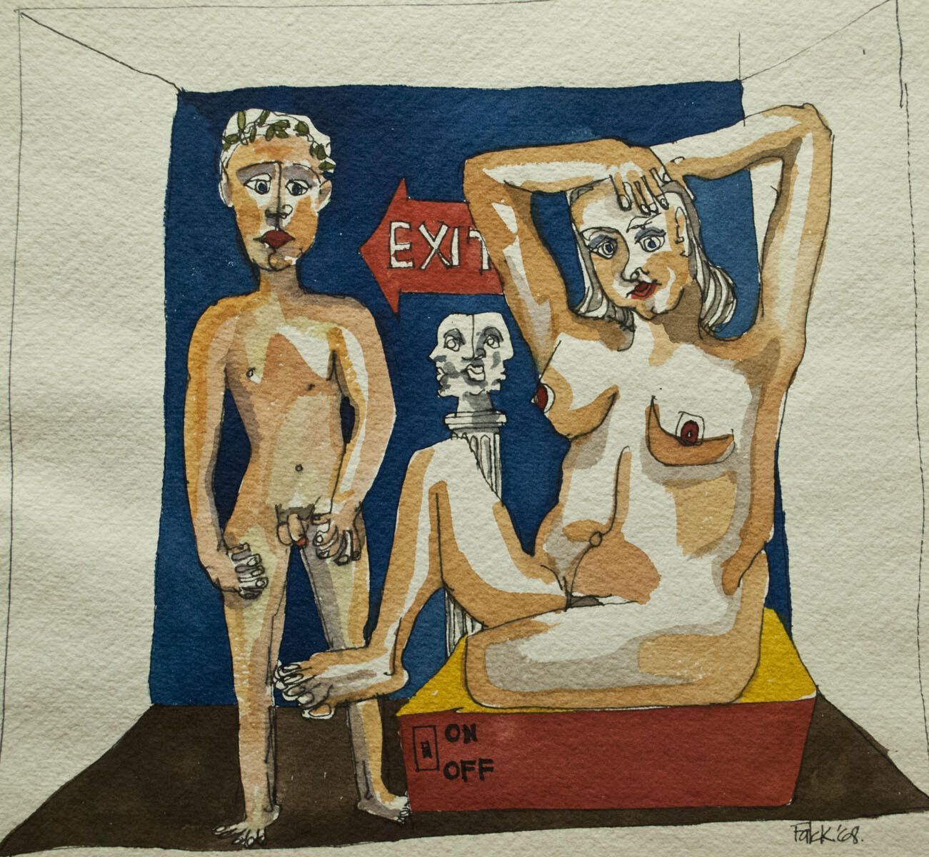 Poorly matted with masking tape. Image in good condition. Male and female nude figures.Artwork Details