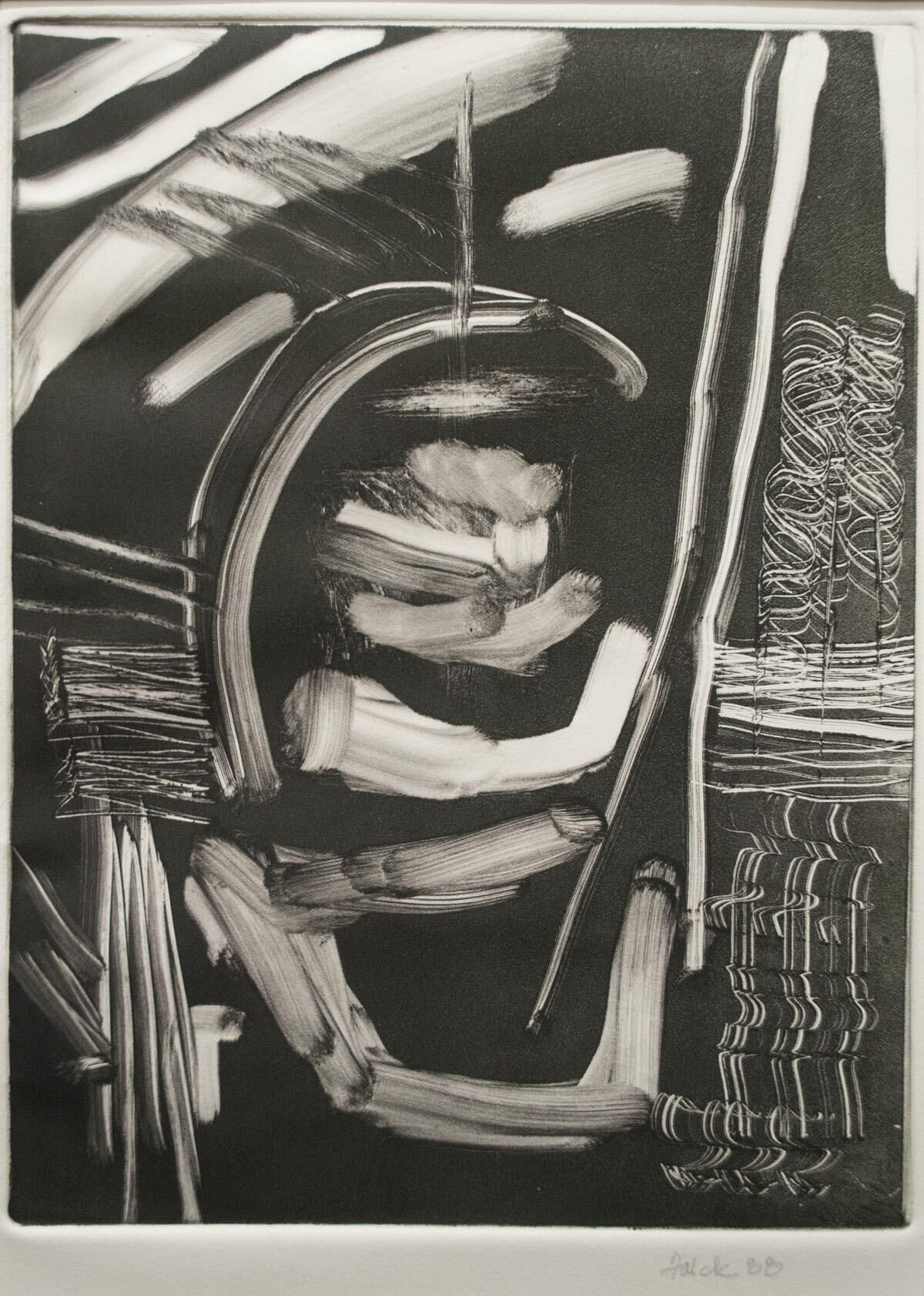 Taped into mat with masking tape. Tape beginning to discolor. Image in good condition Abstract composition.Artwork Details