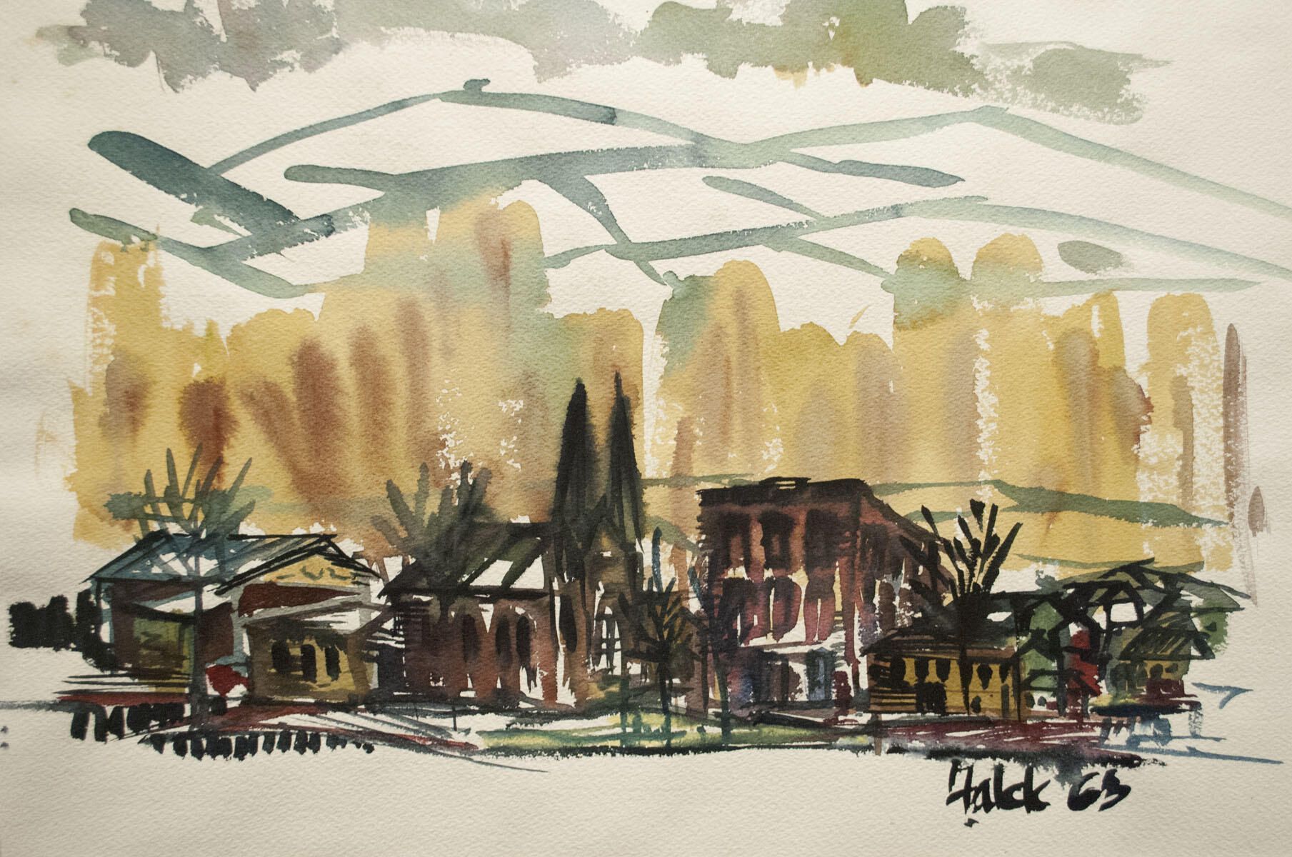 Foxing in image and light smudges. Poorly matted with masking tape. Landscape—Aspen?Location