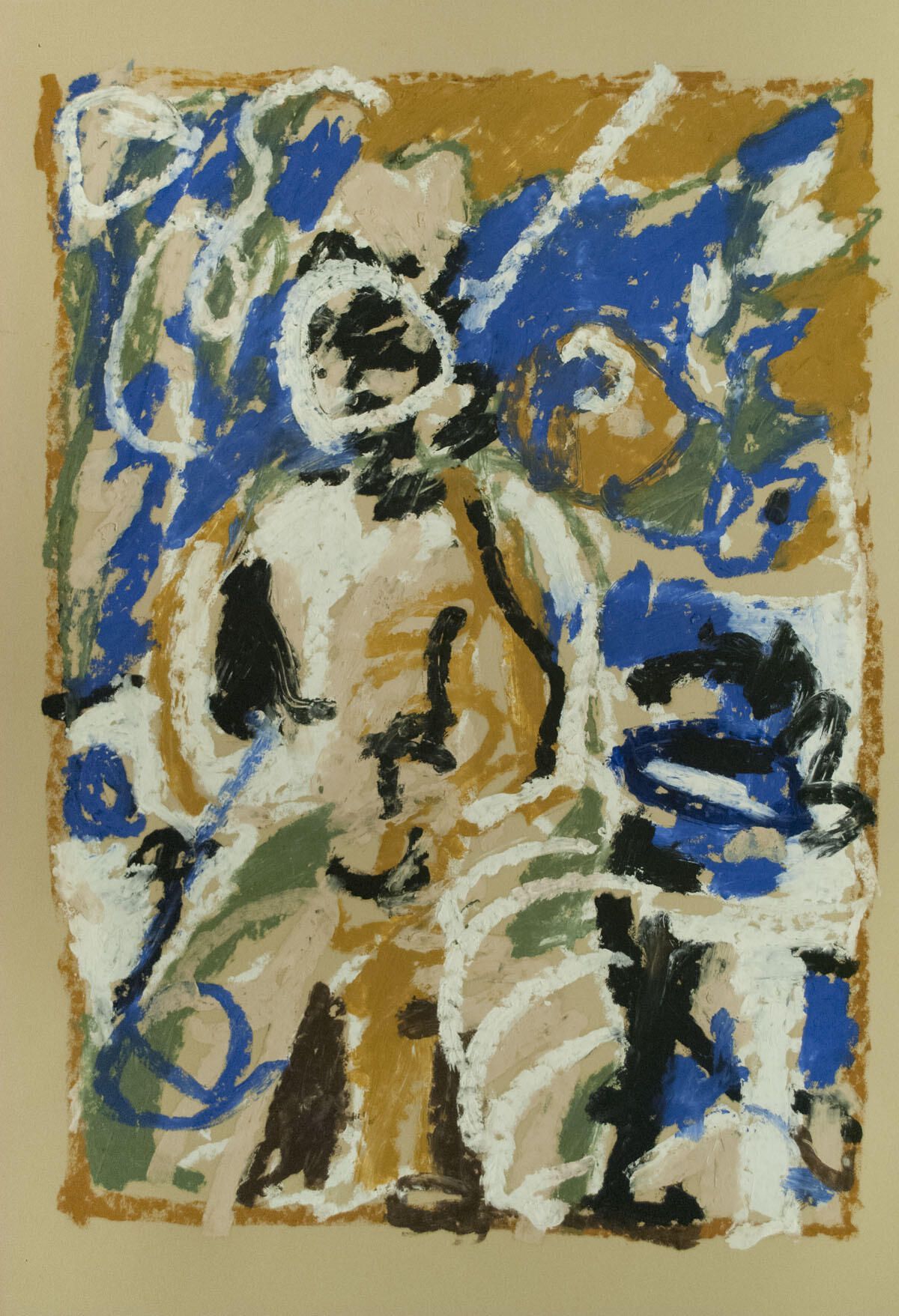 Some smudges in borders. Pinholes in corners. Image in good condition. Large paint chip attached to back of paper. Figure. Unknown series.Location