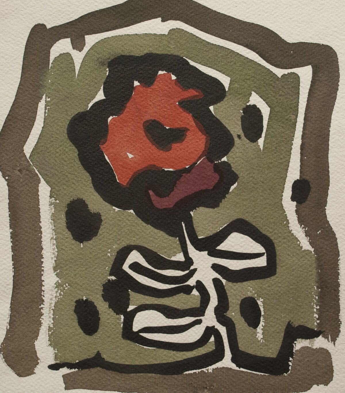 Irregularly cut paper. Some smudges in negative areas. In otherwise good condition. Still life of flower.Dimensions