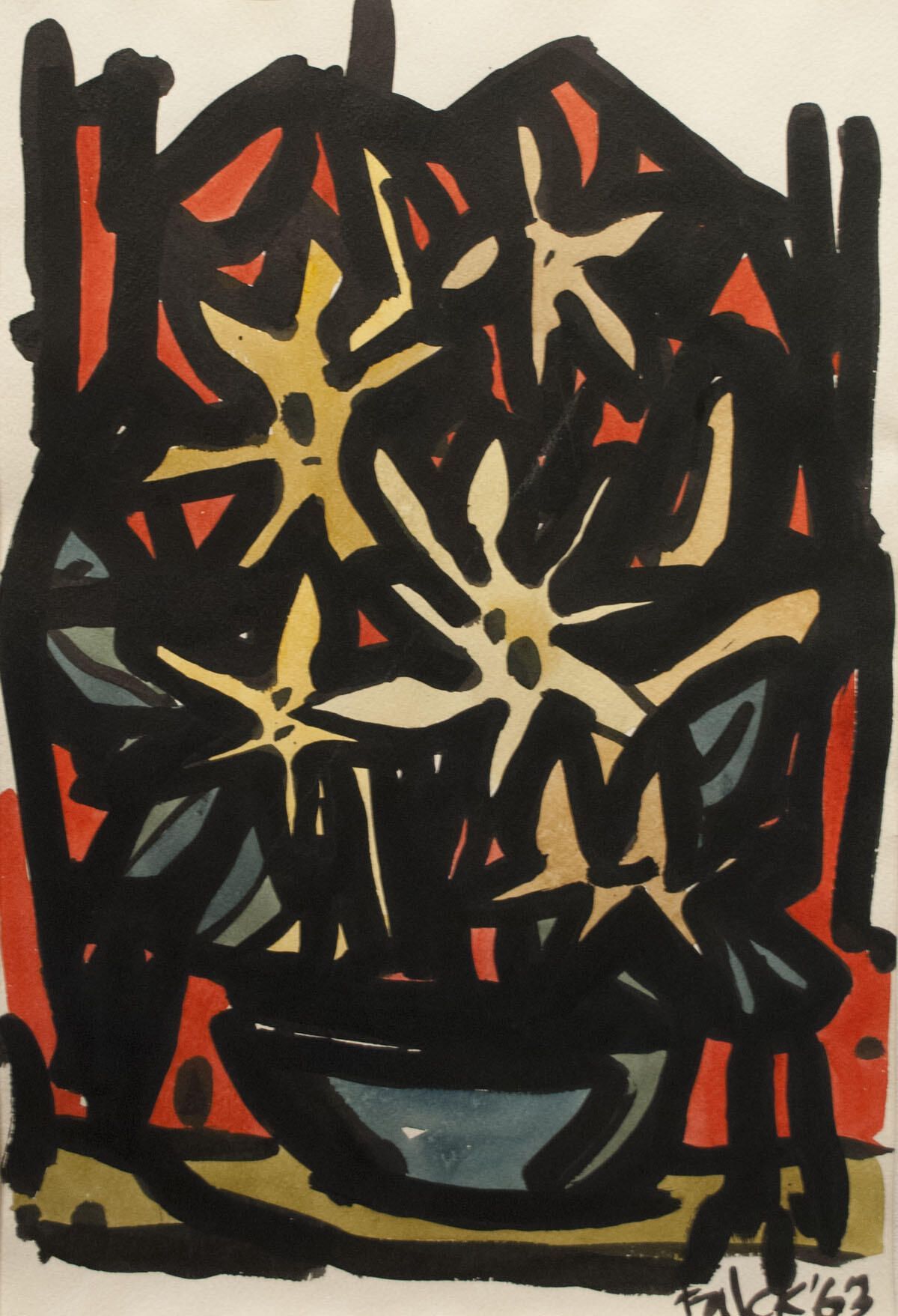 Poorly matted with masking tape. Image in good condition. Still life—flowers.Location
