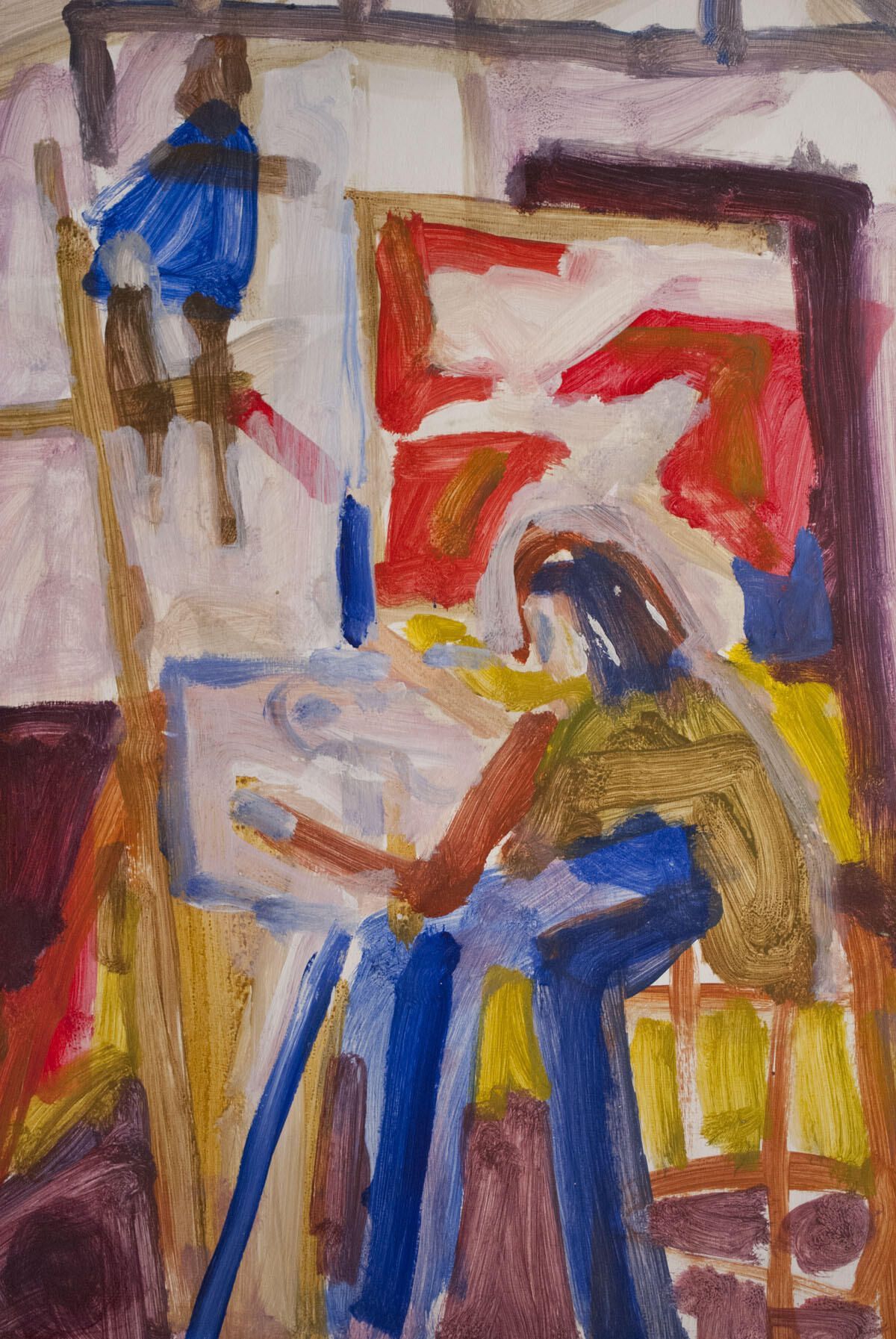 Bleed image, pinholes in each corner. In overall good condition. Interior studio scene.Location